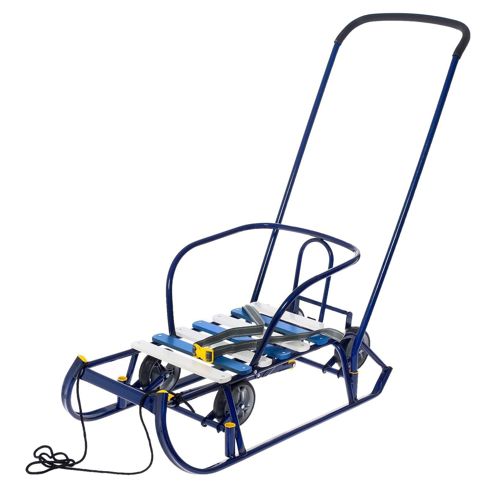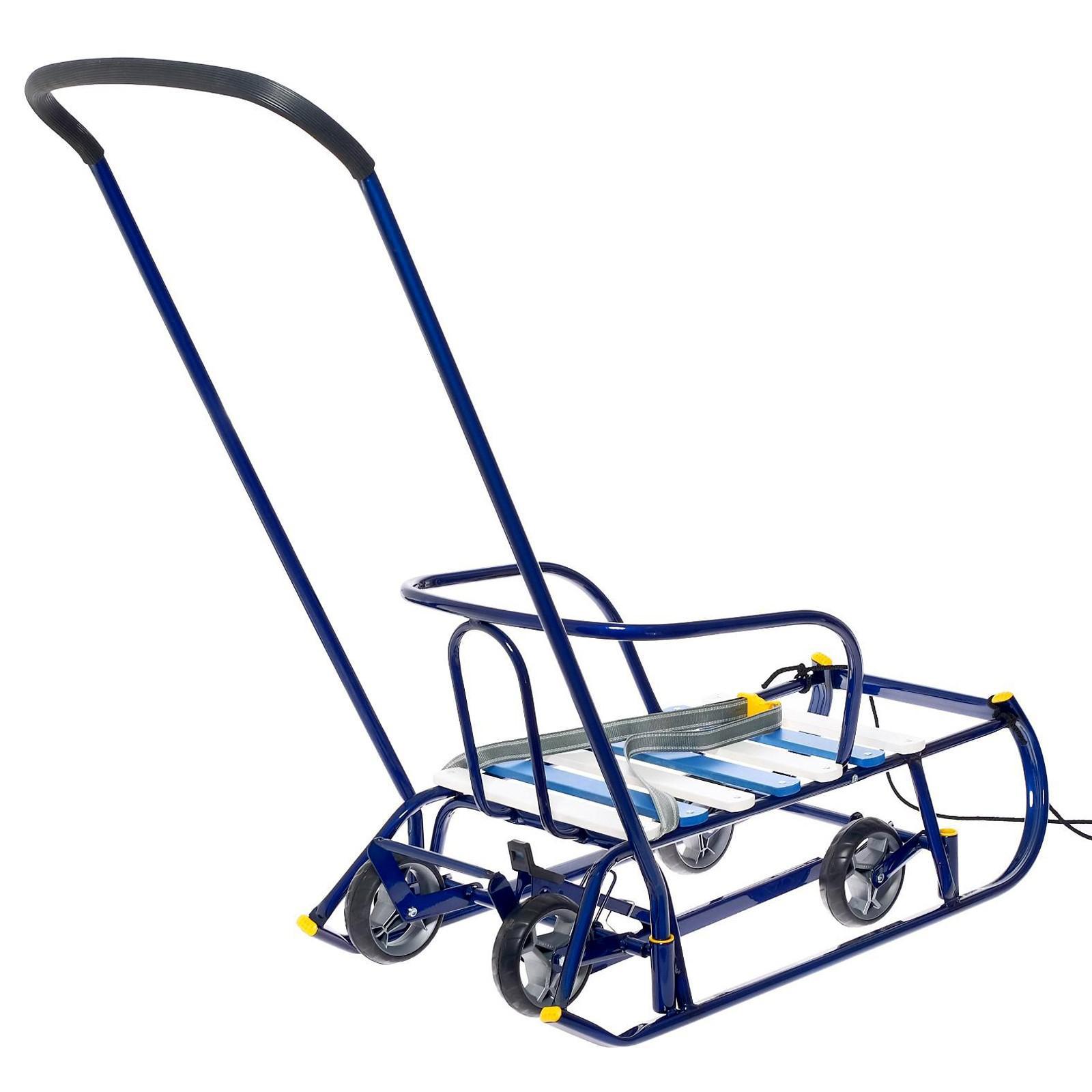Санки «тимка 6 универсал», синий лак. Цвет: Синий Возраст: От 3 лет parts count: 0 Вид: Санки универсальные Перекидная ручка: Да Ремень безопасности: Да Положение спинки: Сидя Особенности санок: Без особенностей Складная конструкция: Да Задние колёса: Нет Выдвижная база колёс/полозьев: Да Температурное ограничение: Нет  развернуть описание ▼