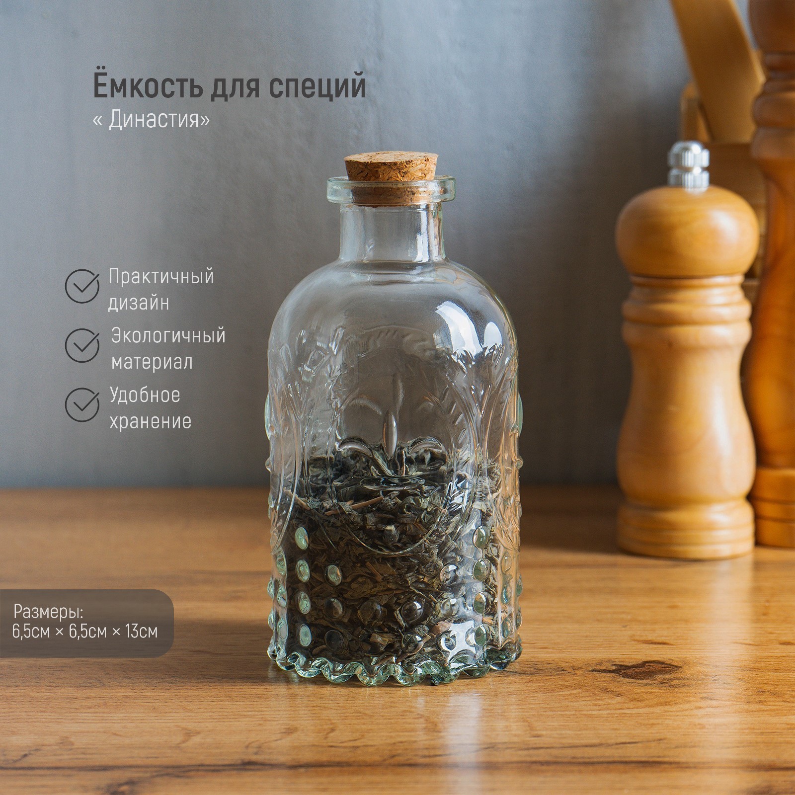 Банка стеклянная для сыпучих продуктов с пробковой крышкой доляна «парфе. династия», 250 мл, 6,5x13 см