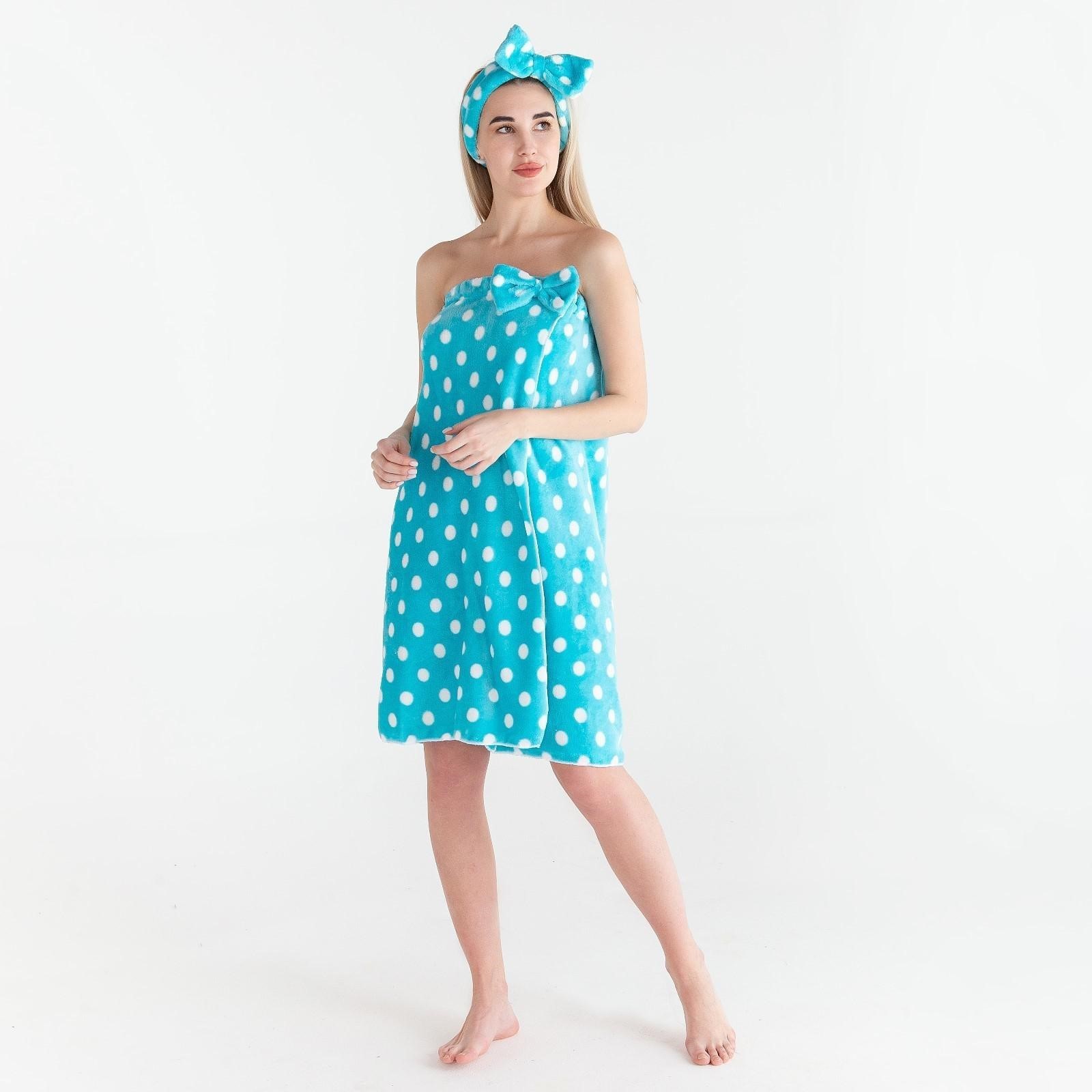 Набор для бани и ванной «этель. горох», полотенце-парео 75 120 см, повязка на голову, голубой