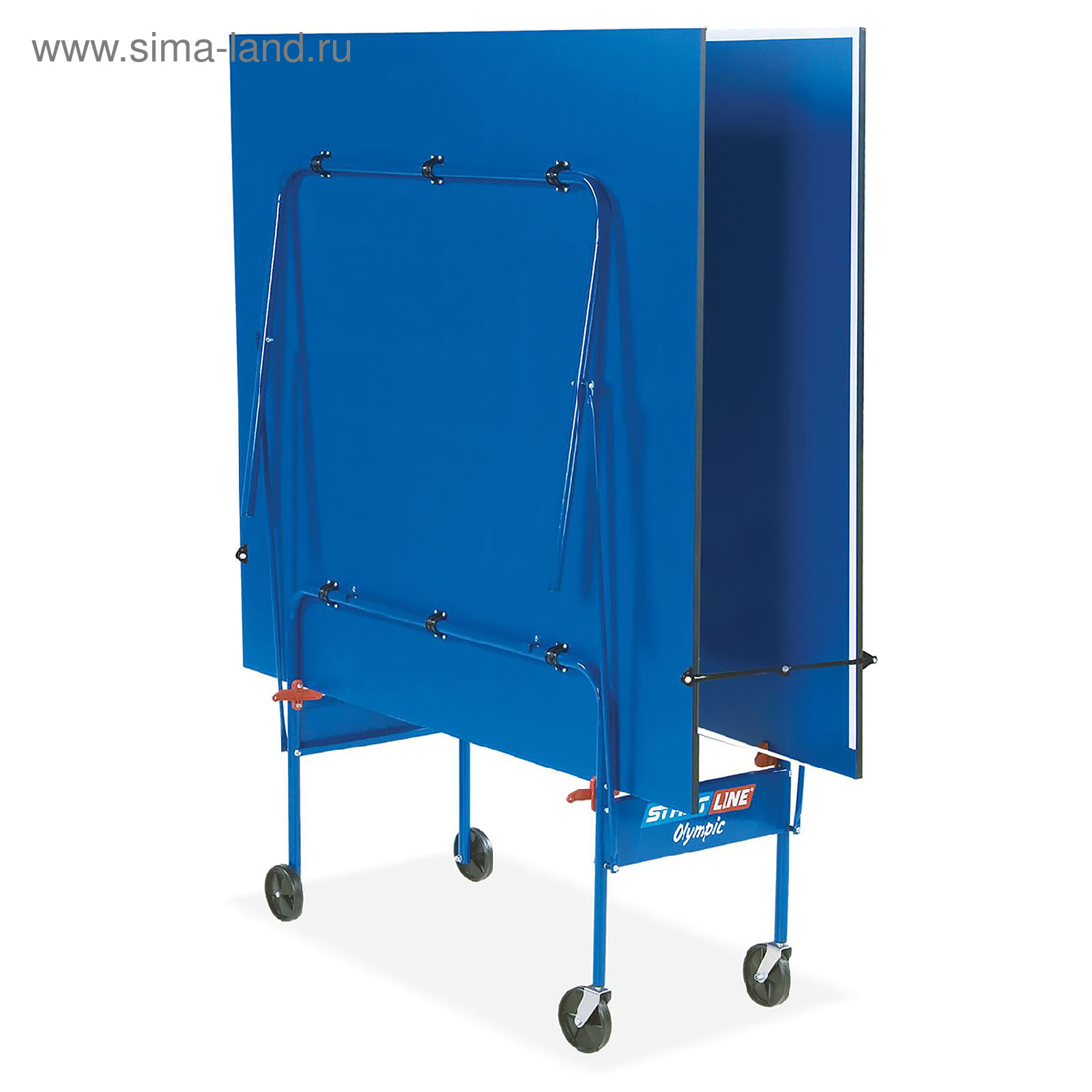Стол теннисный start line olympic, без сетки. Теннисный стол Start Line Olympic предназначен для любительских игр в помещениях. Модель имеет два варианта исполнения игрового поля. Конструкция стола легко устанавливается и складывается, имеет механизм самоблокировки. Размер теннисного стола соответствует международным стандартам ITTF. Особенности Материал игрового поля: ЛДСП толщиной 16 мм с меламиновым покрытием. Отличается высокой устойчивостью к влаге и механическим повреждениям, имеет антибликовые свойства. . Материал канта игрового поля: ПВХ толщиной 0, 45 мм. Материал рамы: сталь с полимерным покрытием. Транспортировочная система: обрезиненные ролики диаметром 125 мм, одна сторона маневровая. Габариты стола Длина: 274 см. Ширина: 152, 5 см. Высота: 76 см. Вес: 39 кг. Габариты товара в упаковке Длина: 157 см. Ширина: 9 см. Высота: 141 см. Вес: 44 кг. Цвет: Синий Высота, см: 76 Уровень спорта: Любительский Материал столешницы: ЛДСП Размер столешницы, см: 274 х 152.5 Сетка в комплекте: Нет Вид: Для закрытых помещений Мобильность: Система роликов Конструкция: Складной  развернуть описание ▼