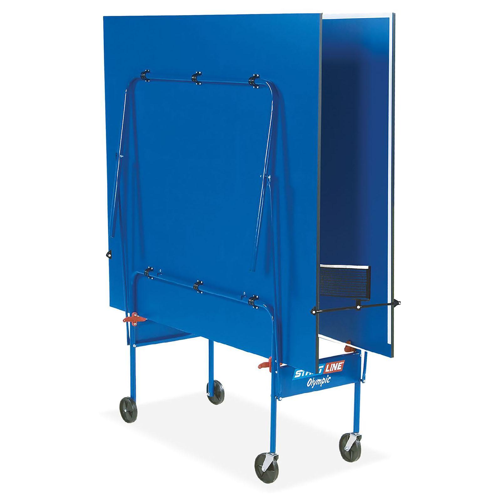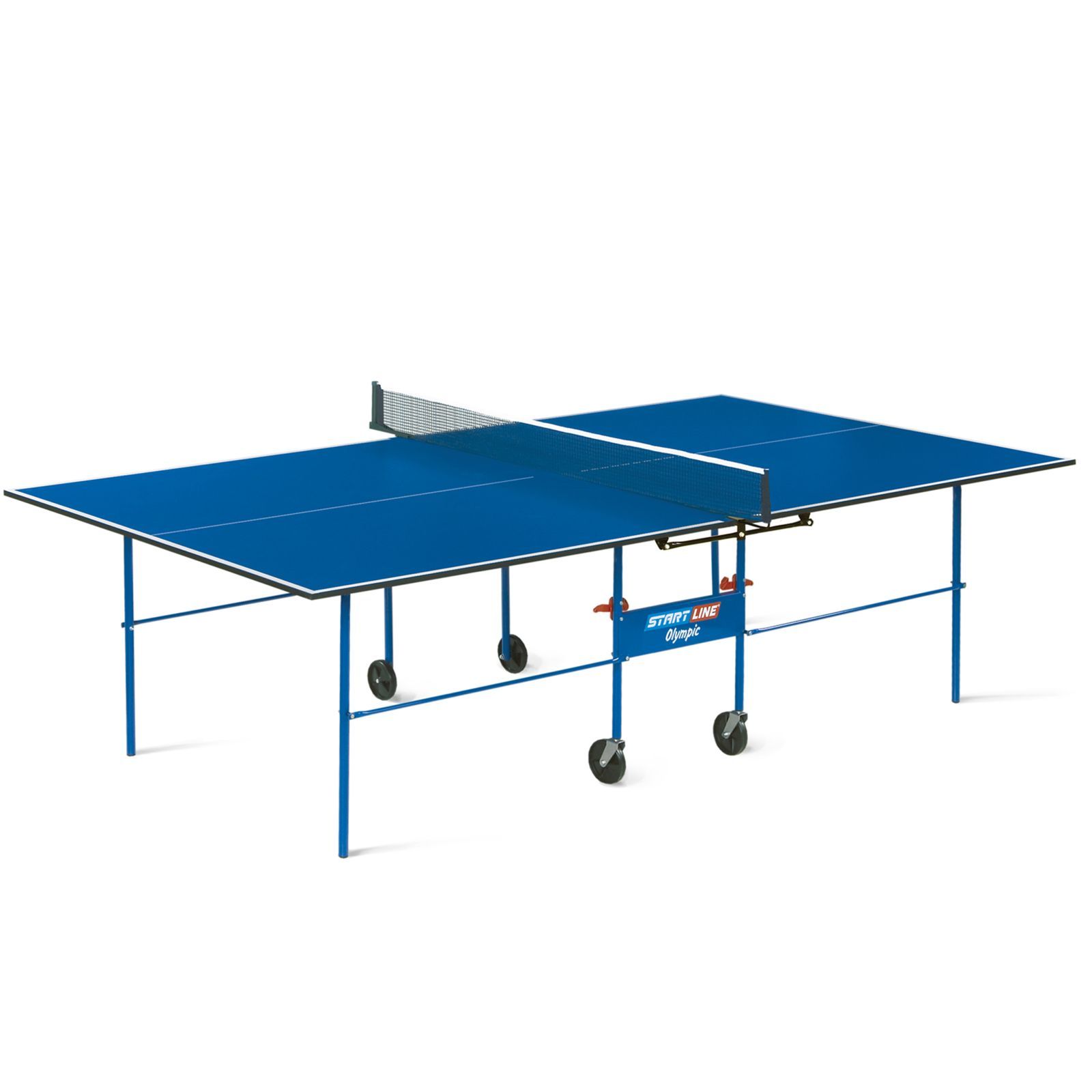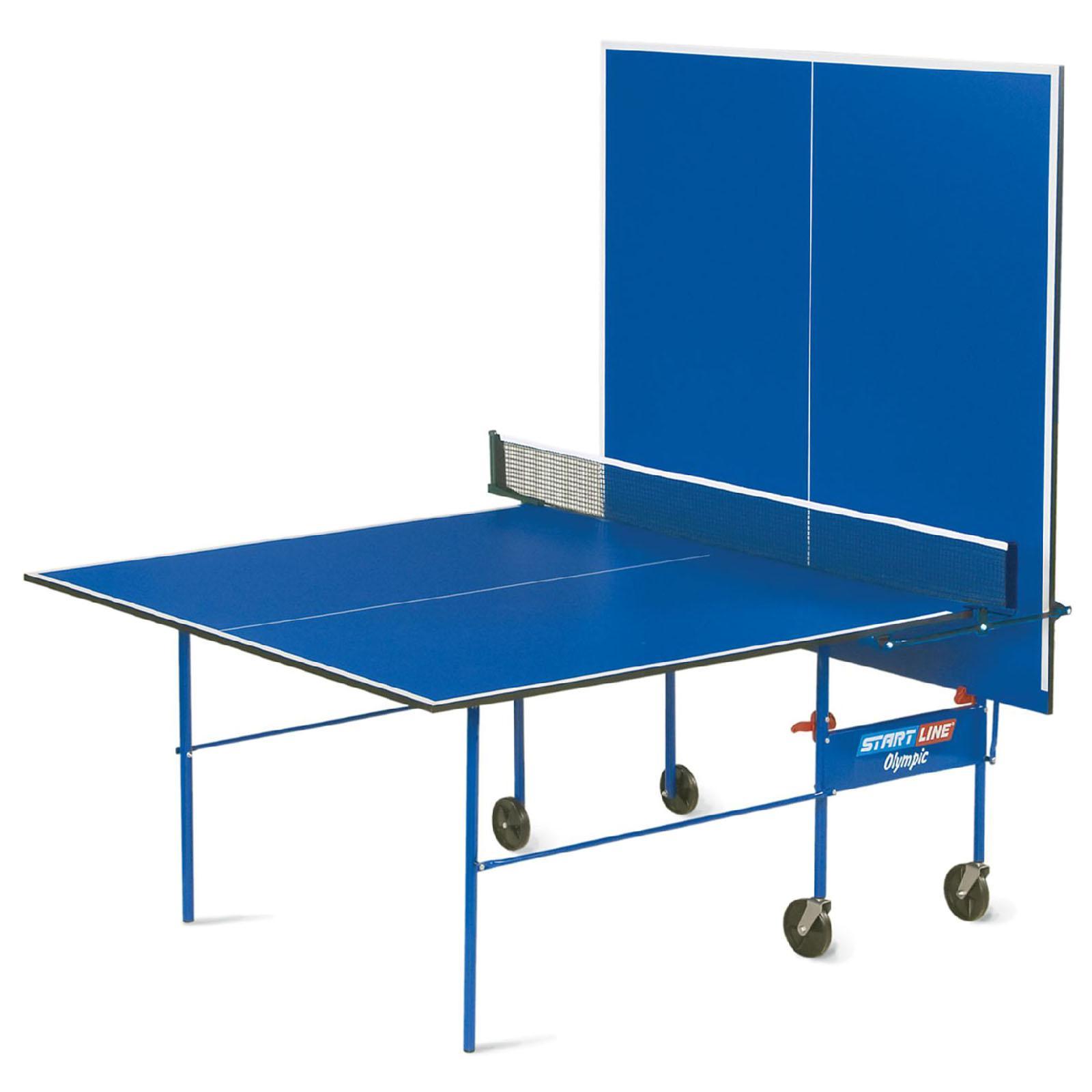 Стол теннисный start line olympic, с сеткой. Теннисный стол Start Line Olympic предназначен для любительских игр в помещениях. Модель имеет два варианта исполнения игрового поля. Конструкция стола легко устанавливается и складывается, имеет механизм самоблокировки. Размер теннисного стола соответствует международным стандартам ITTF. Особенности Материал игрового поля: ЛДСП толщиной 16 мм с меламиновым покрытием. Отличается высокой устойчивостью к влаге и механическим повреждениям, имеет антибликовые свойства. Материал канта игрового поля: ПВХ толщиной 0, 45 мм. Материал рамы: сталь с полимерным покрытием. Транспортировочная система: ролики диаметром 125 мм, одна сторона маневровая. Габариты стола Длина: 274 см. Ширина: 152, 5 см. Высота: 76 см. Вес: 59 кг. Габариты товара в упаковке Длина: 157 см. Ширина: 9 см. Высота: 141 см. Вес: 65 кг. Комплектация Встроенная сетка. Цвет: Синий Высота, см: 76 Уровень спорта: Любительский Материал столешницы: ЛДСП Размер столешницы, см: 274 х 152.5 Сетка в комплекте: Да Вид: Для закрытых помещений Особенности: Встроенная сетка Мобильность: Система роликов Конструкция: Складной  развернуть описание ▼