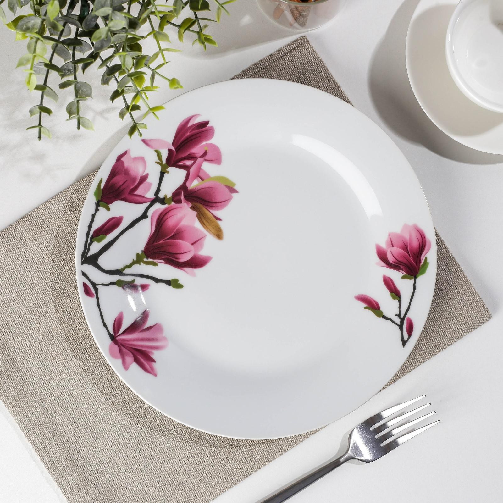 Тарелка керамическая обеденная доляна «сакура», D=23 см, цвет белый