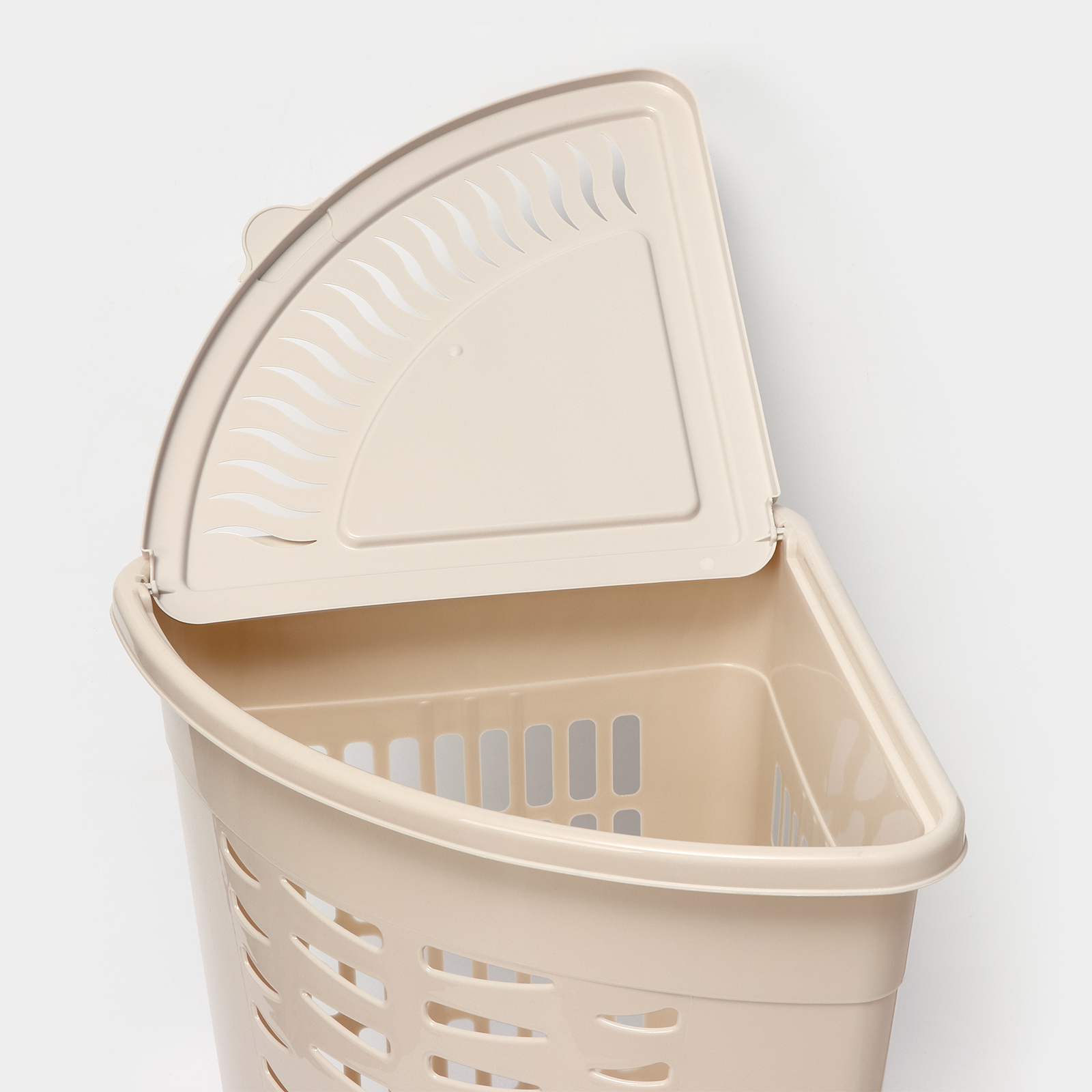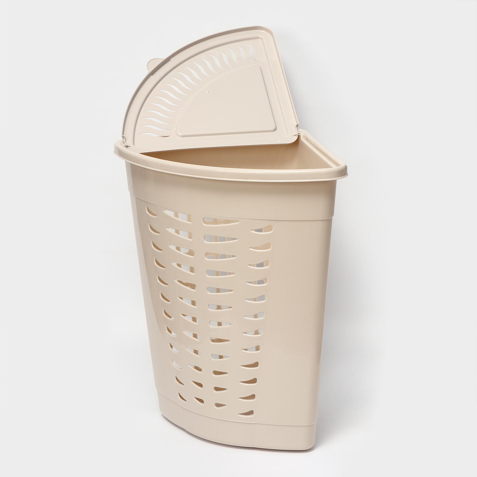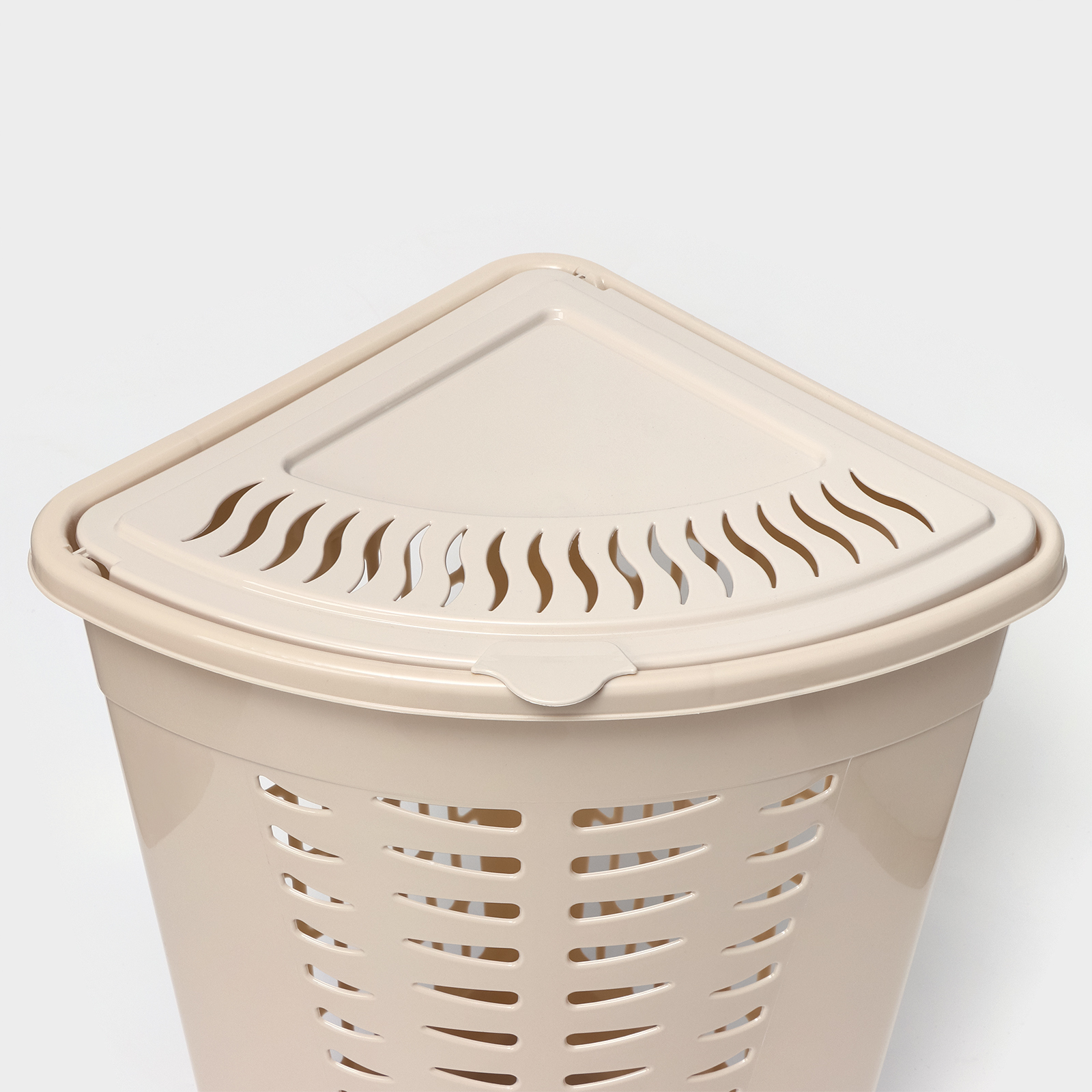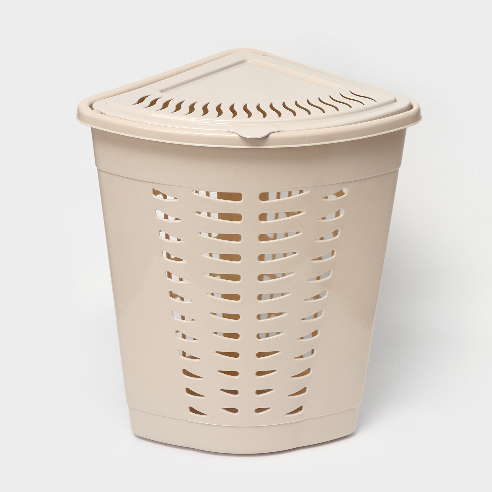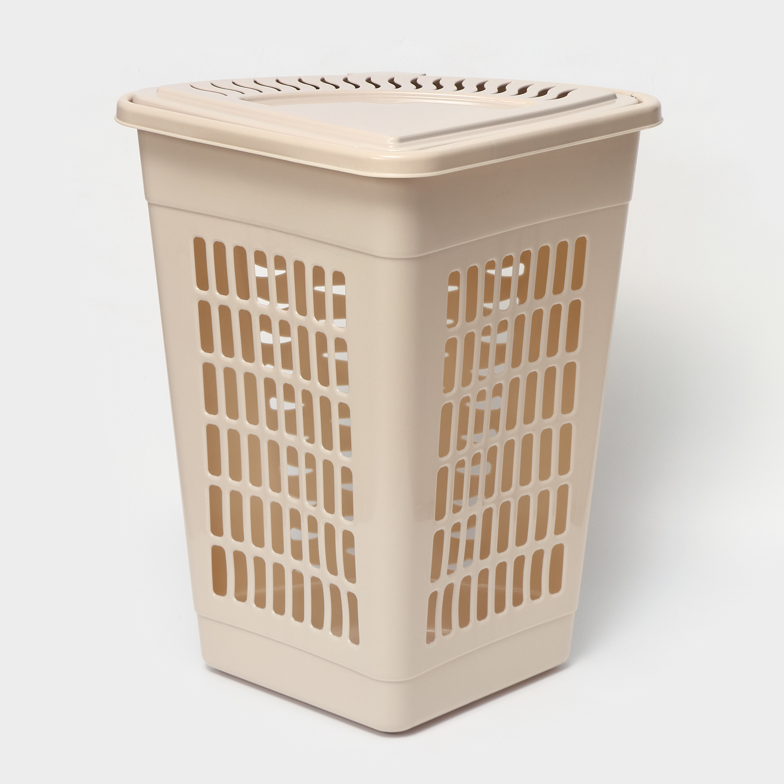 Корзина для белья угловая с крышкой, 45 л, 37x50x56 см, цвет слоновая кость