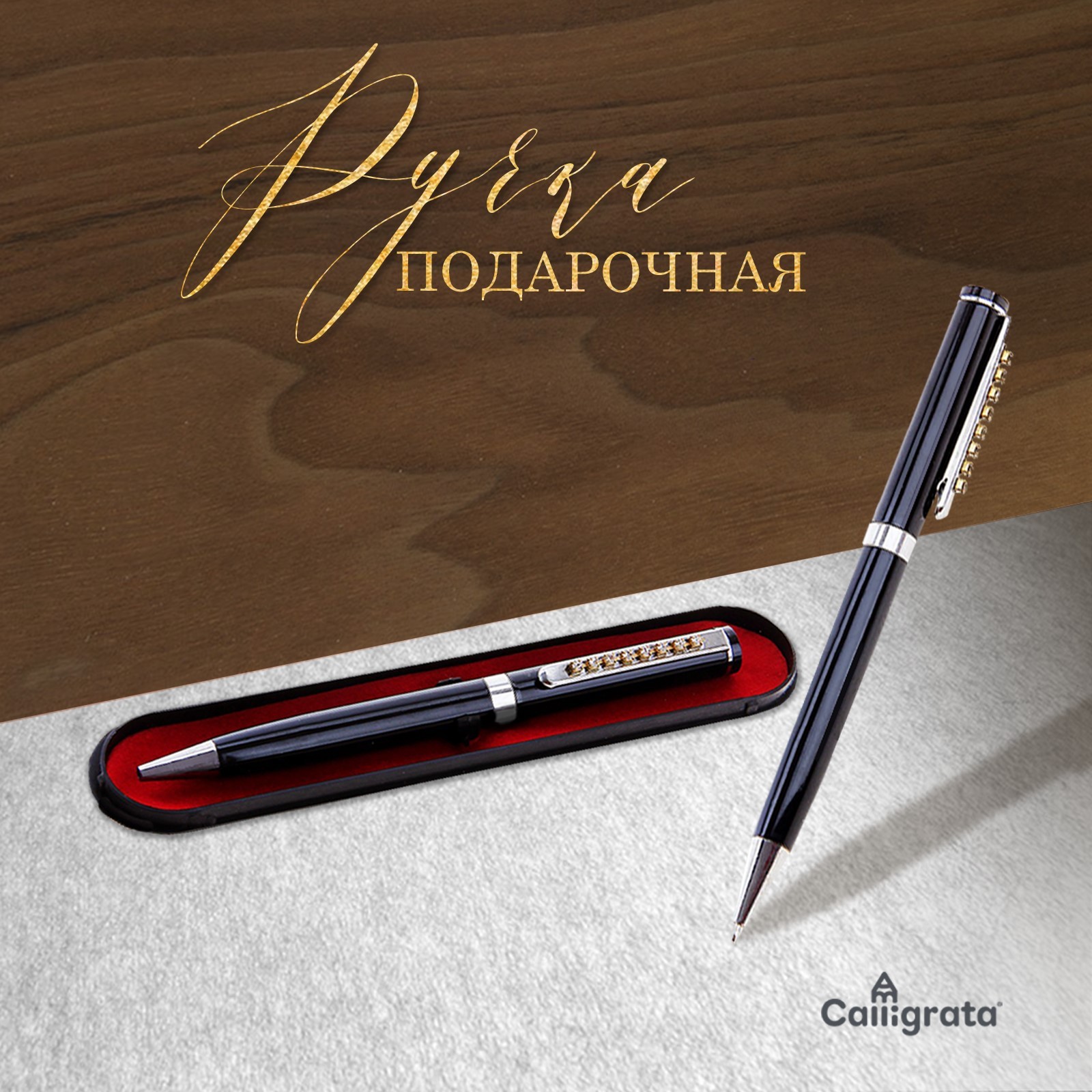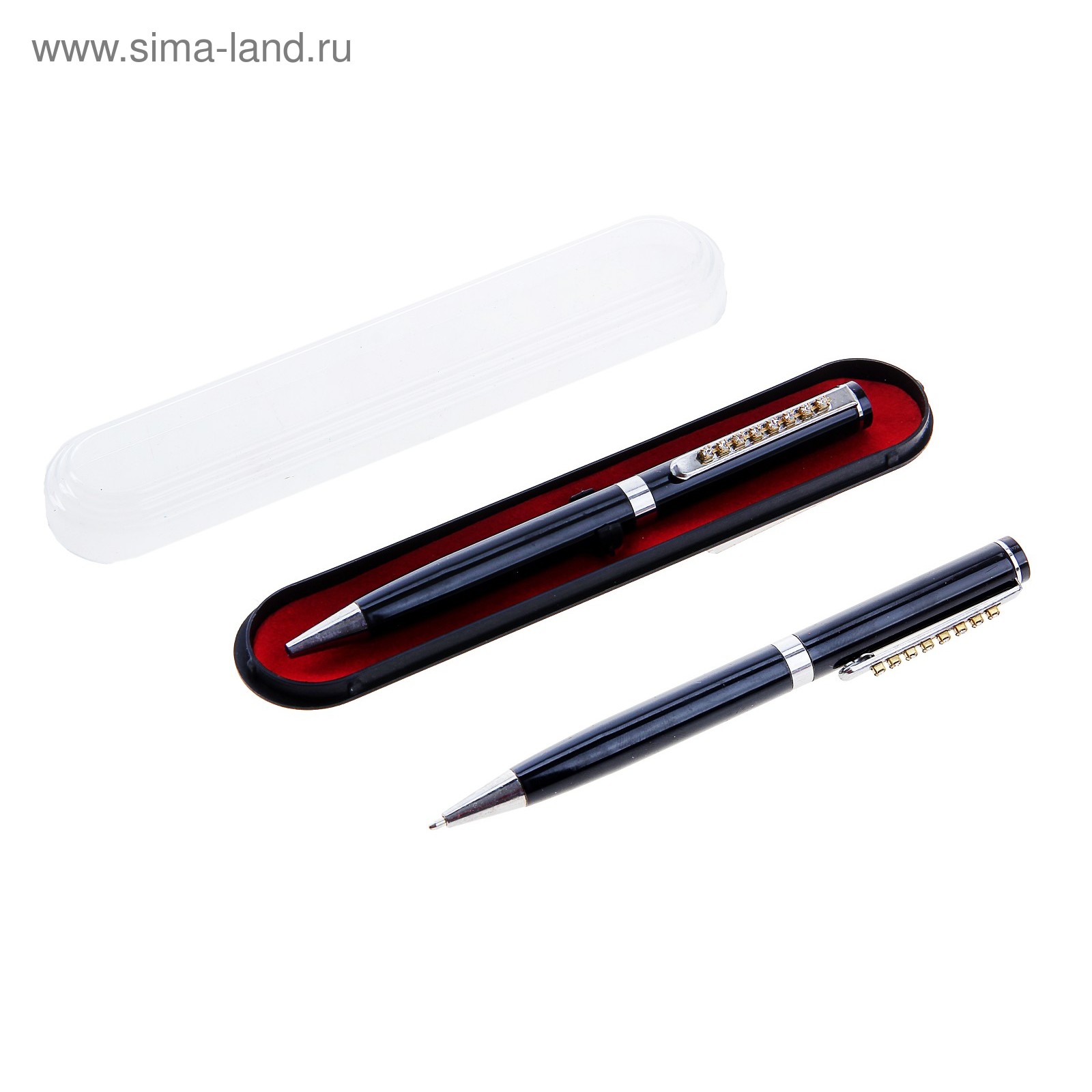 Ручка шариковая, подарочная Calligrata «стразы», в пластиковом футляре, поворотная, чёрная с серебристыми вставками