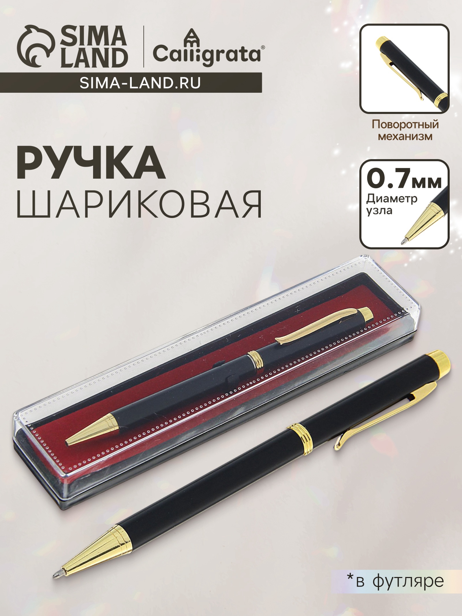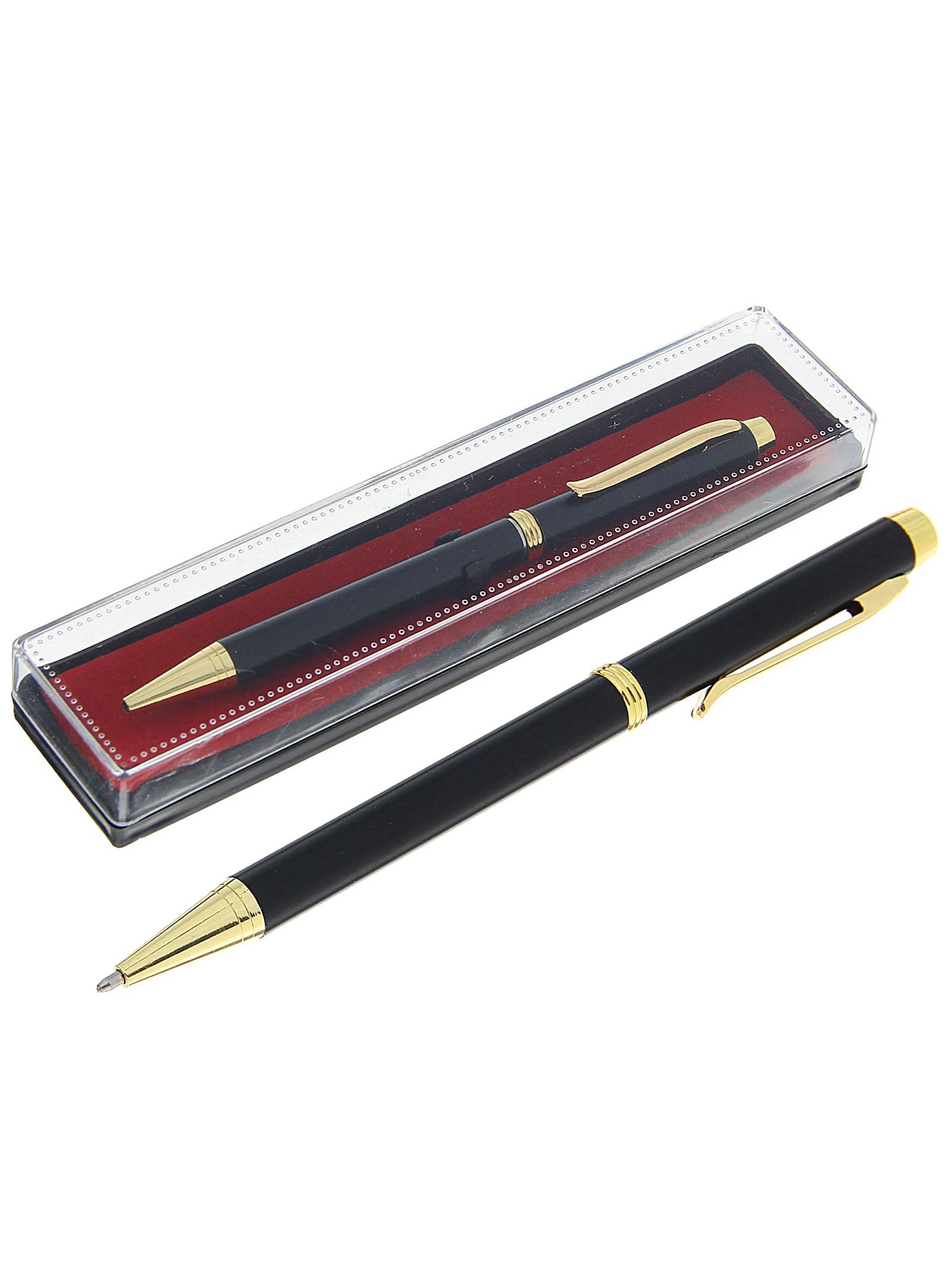 Ручка шариковая, подарочная, в пластиковом футляре, поворотная, «эксперт», чёрная матовая с золотистыми вставками