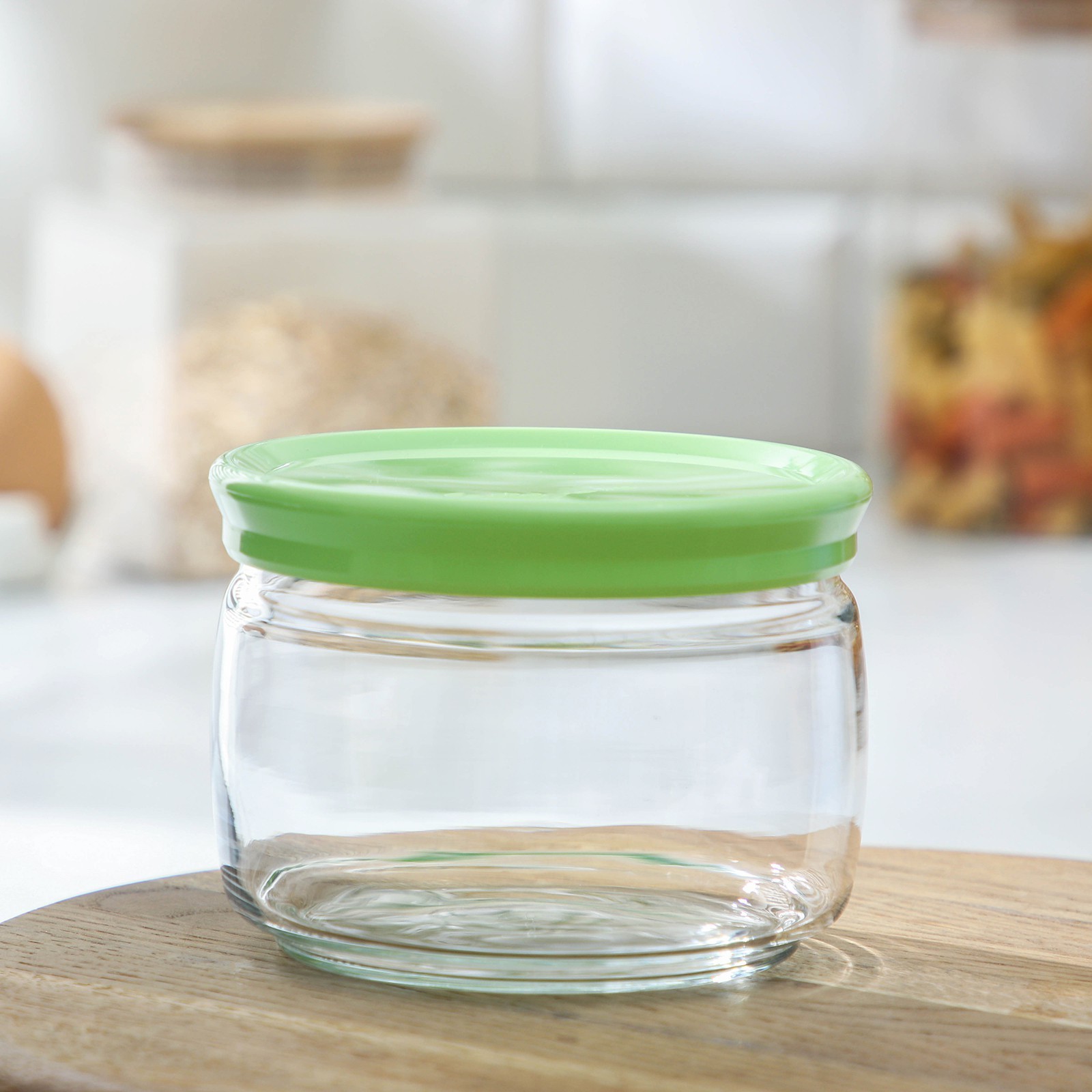 Банка для сыпучих продуктов стеклянная Cesni, 420 мл, зелёная пластиковая крышка