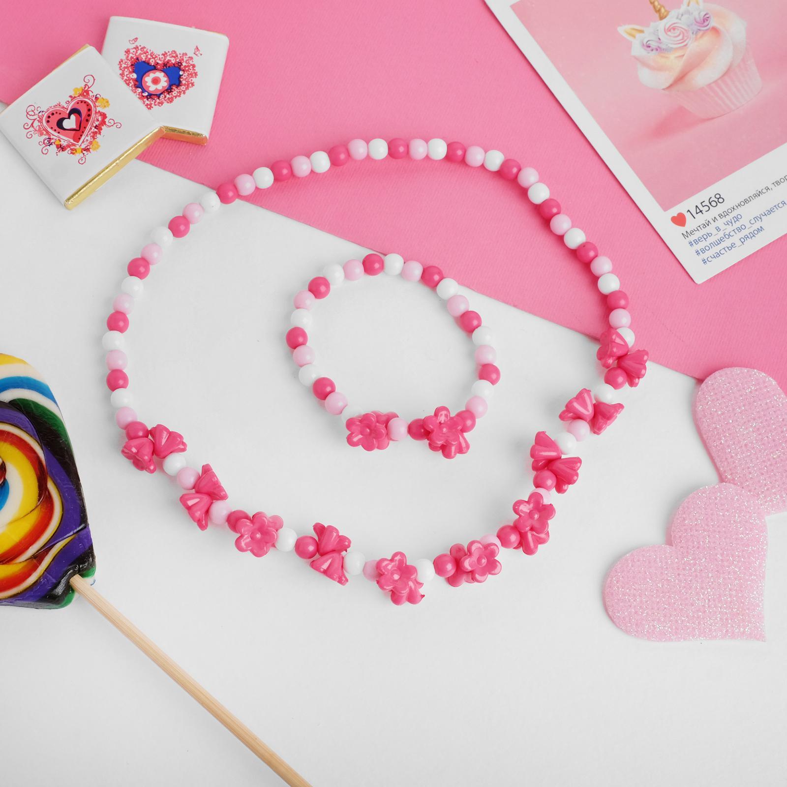 Набор детских украшений выбражулька «цветы сирени», 2 предмета: бусы, браслет D=6 см розовый