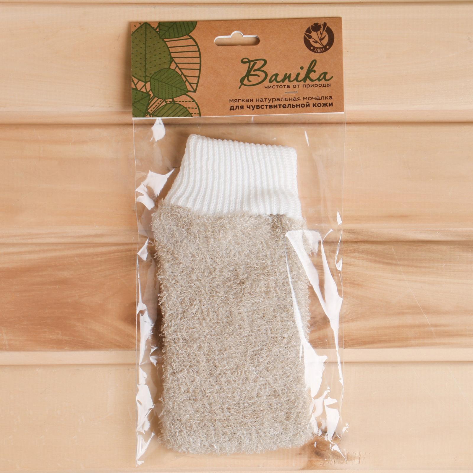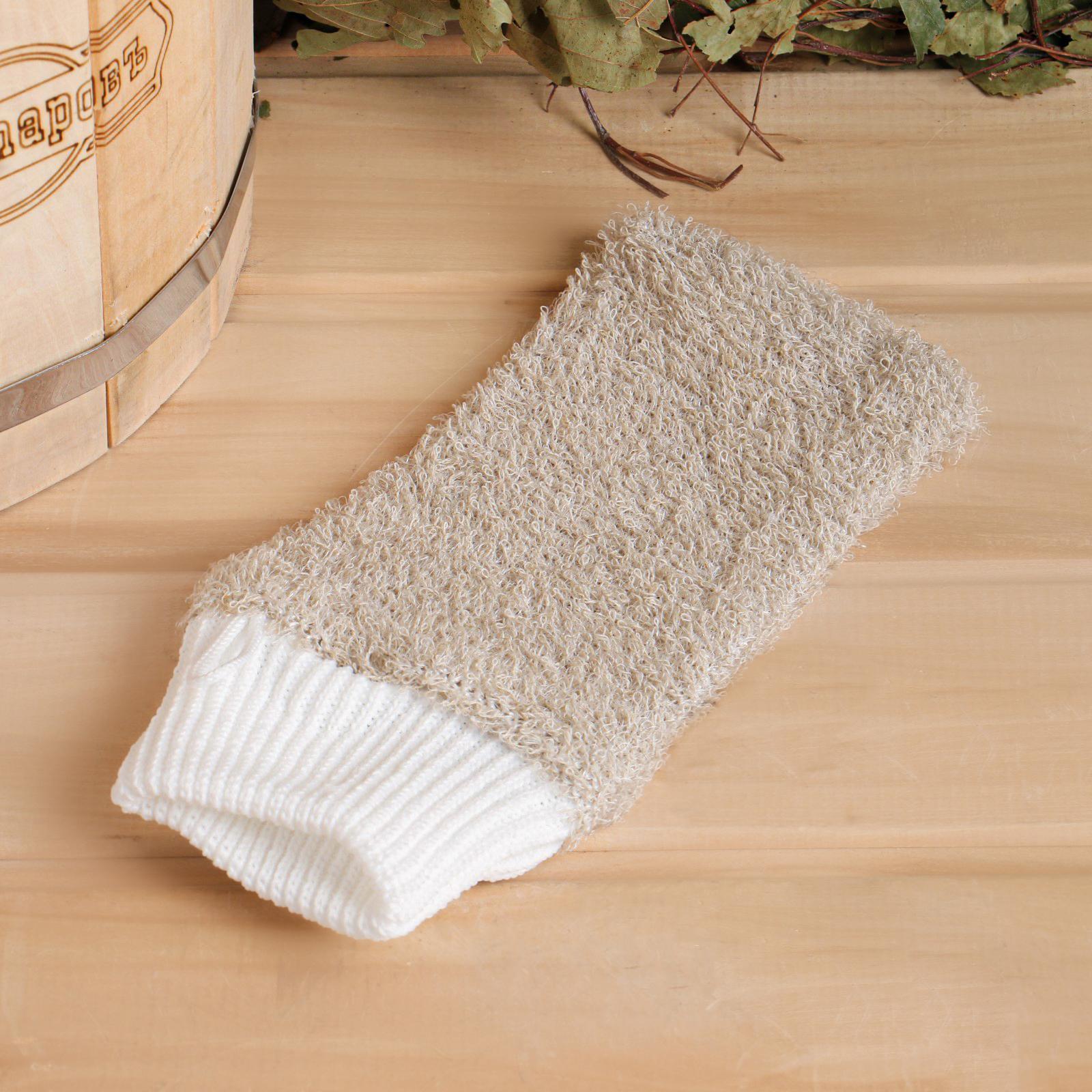 Мочалка банная "рукавица", лён, 23х13см