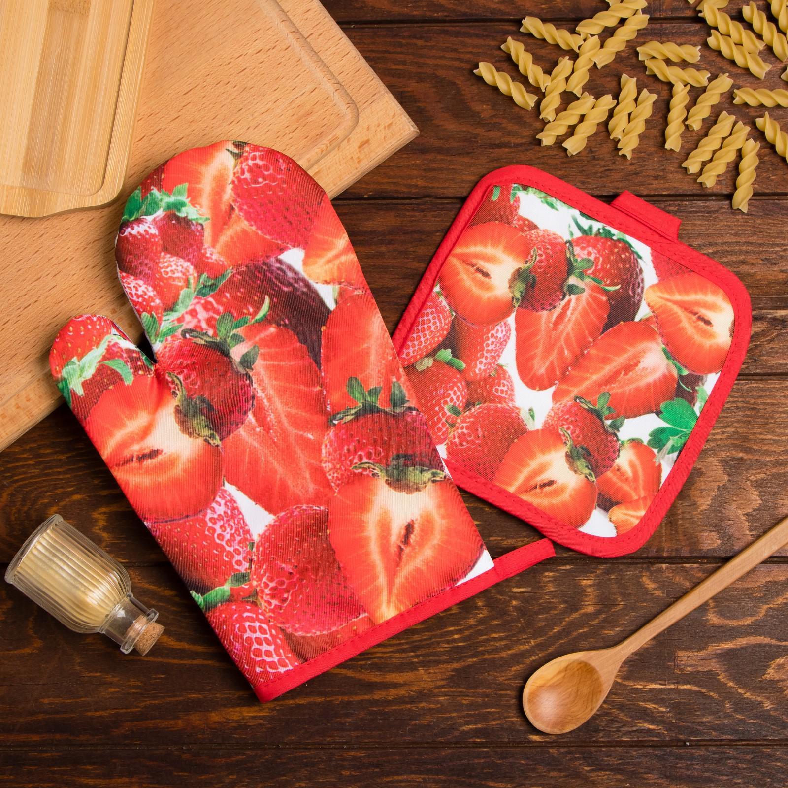 Кухонный набор доляна «клубника», прихватка 17*17 см, рукавица 26*16 см,100% п/э