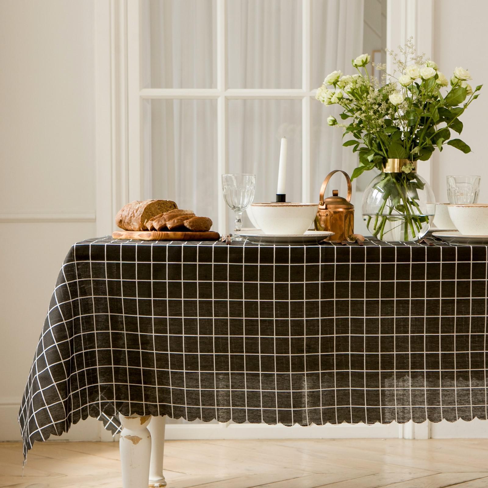 Скатерть доляна "клетка"цв.черный 145х200±3см,100%пэ, рогожка 130 гр/м