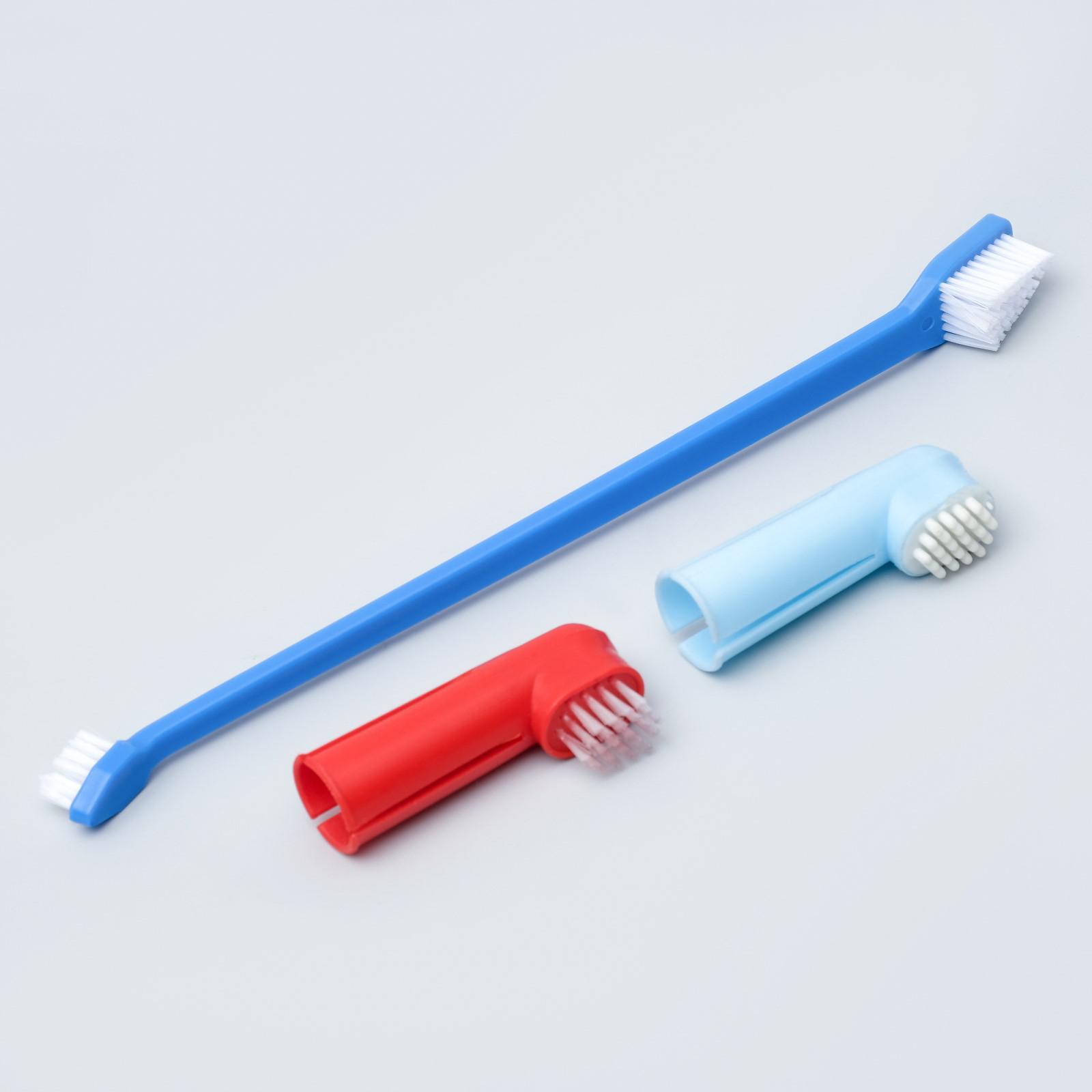 Набор зубная щётка двухсторонняя + щётка напальчник + массажер для десен (набор 3 шт.), микс