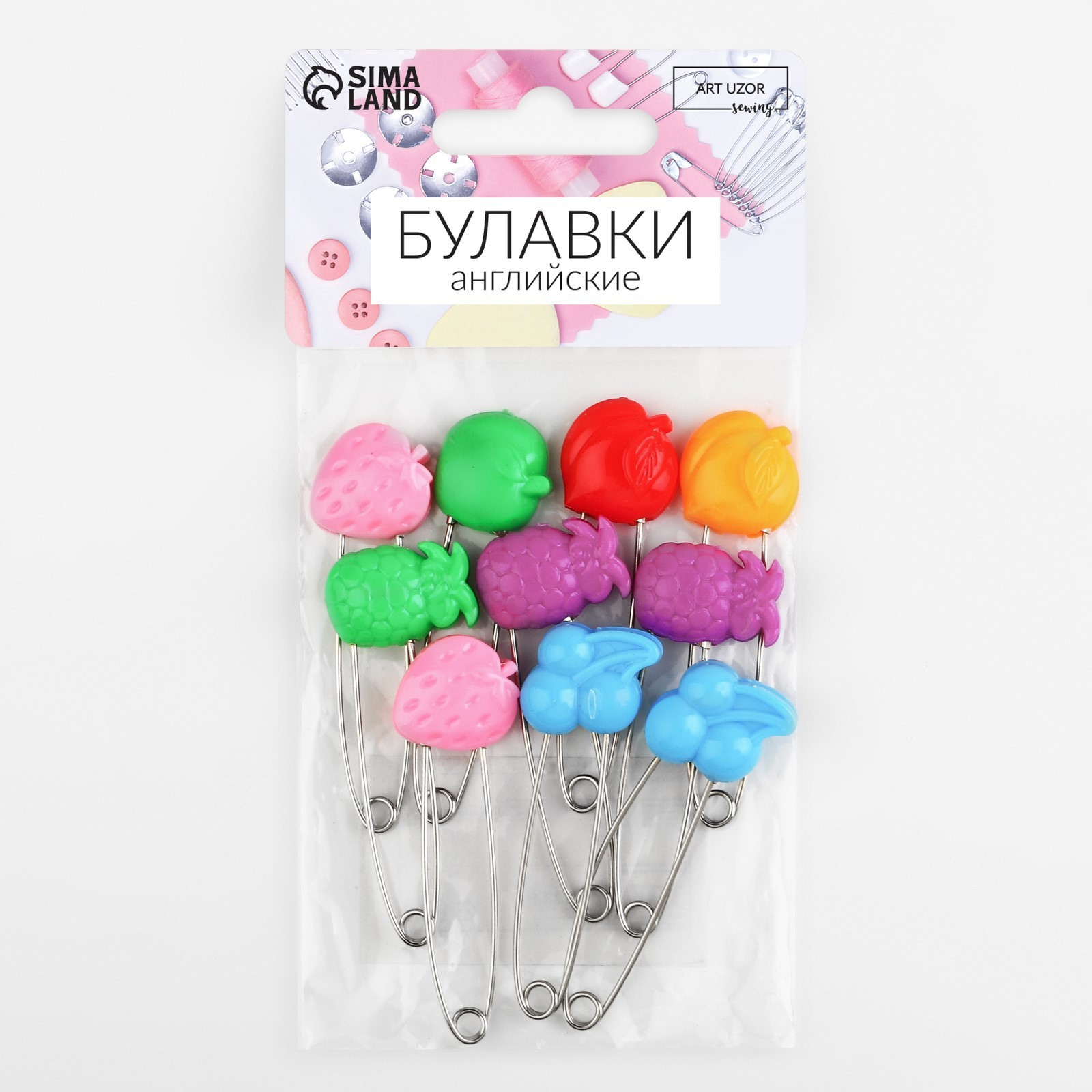 Булавки английские «фрукты», безопасные, 50 мм, 10 шт., микс