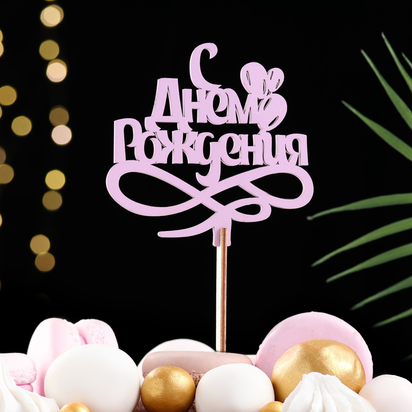 Топпер деревянный "с днём рождения" сиреневый 13х11 см
