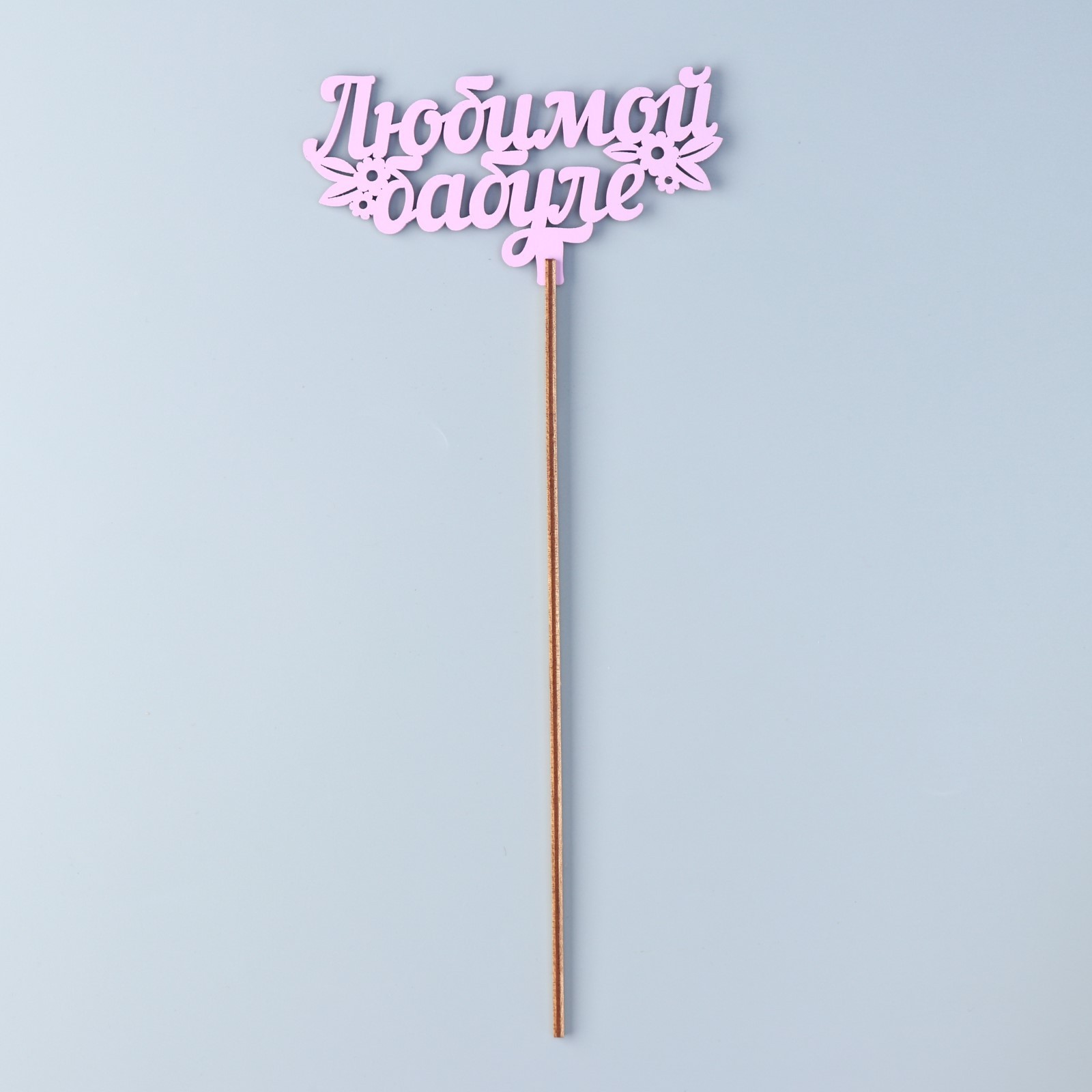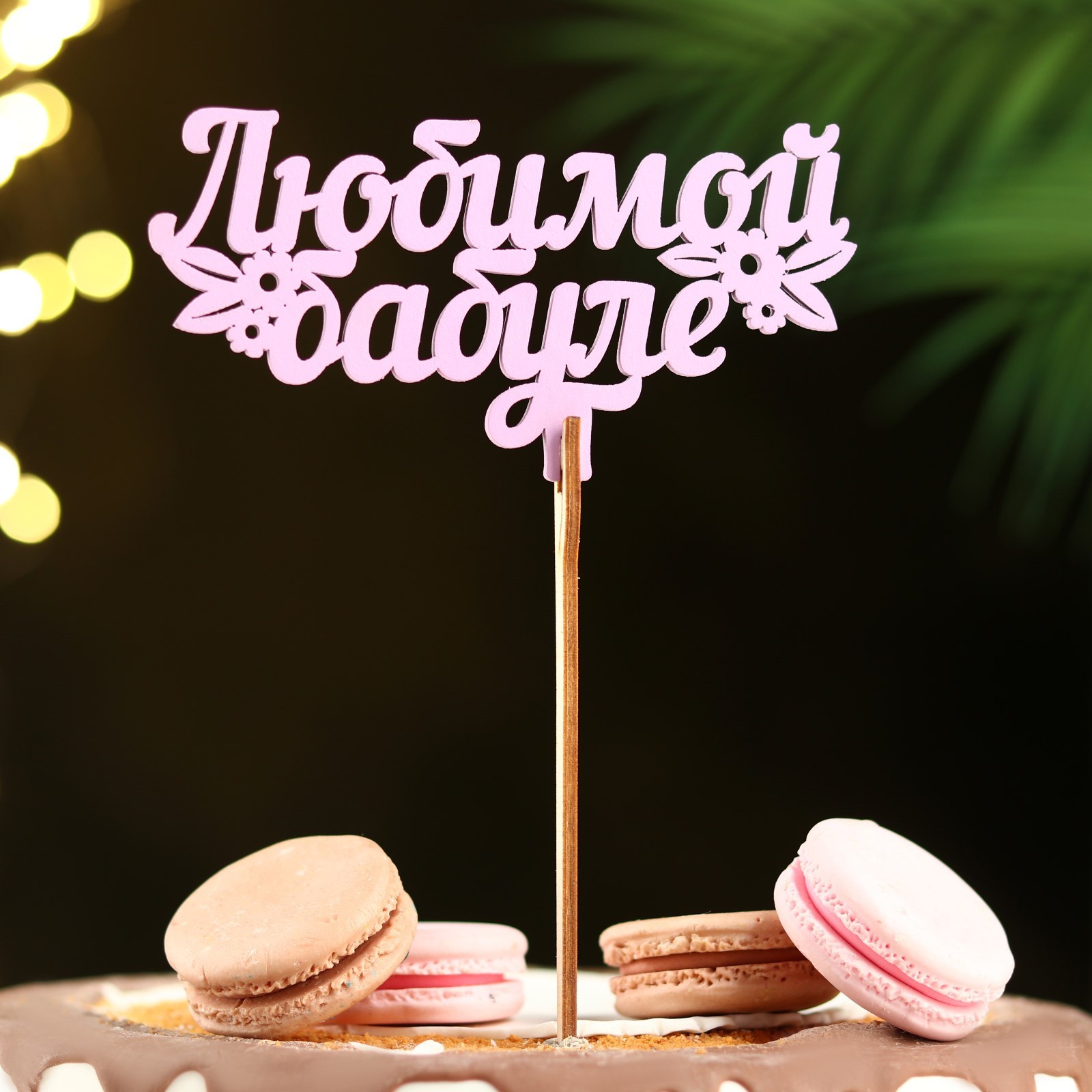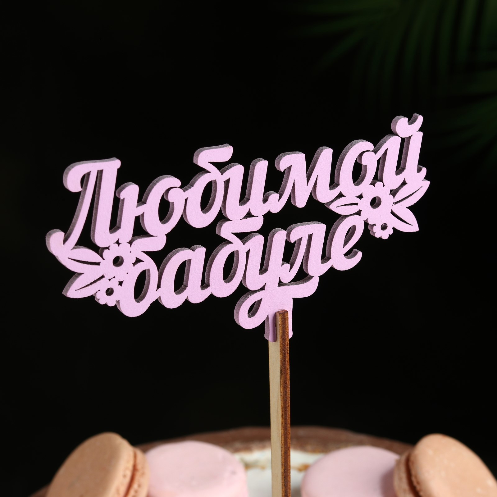 Топпер деревянный "любимой бабуле" сиреневый 13х6 см