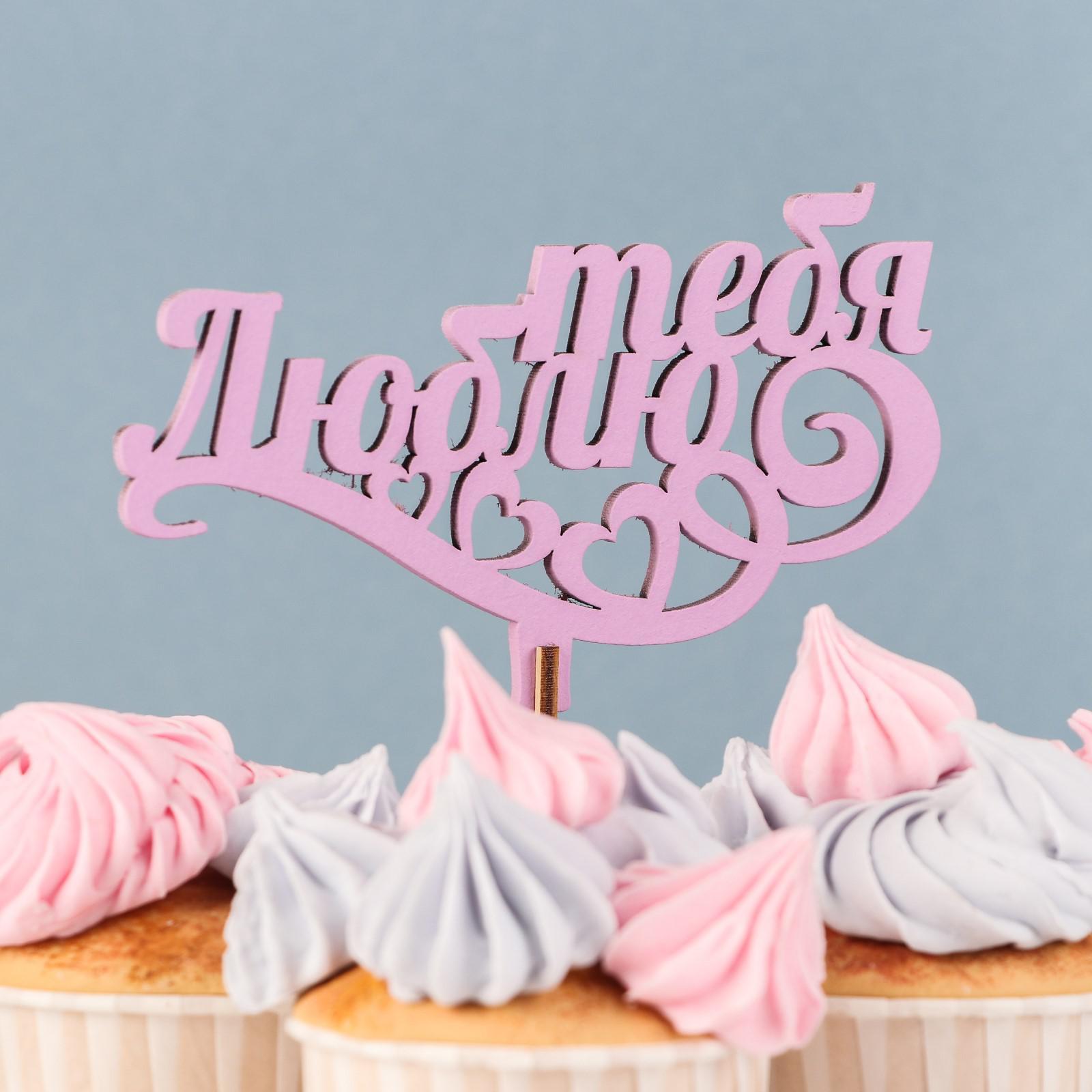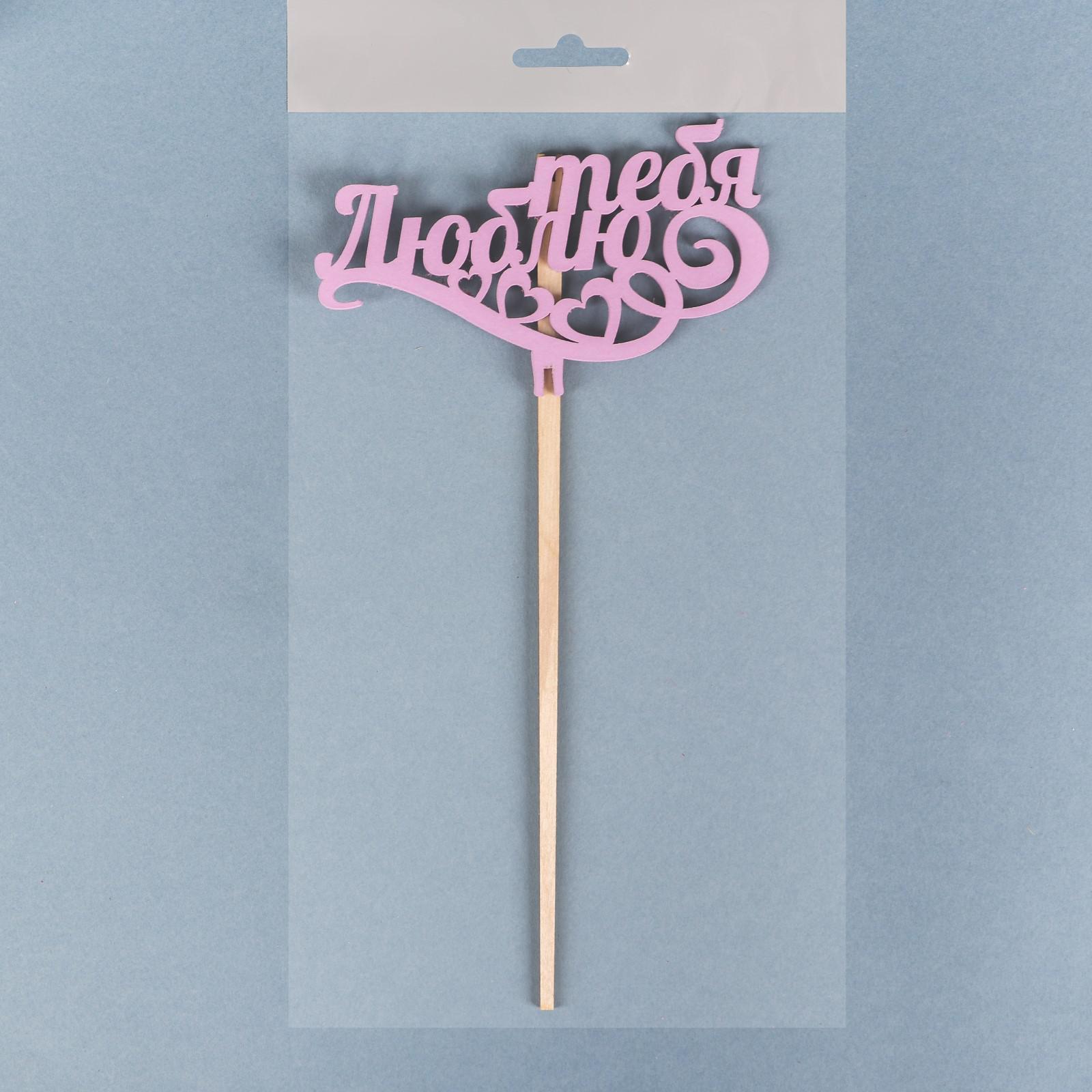 Топпер деревянный "люблю тебя" сиреневый 13х8 см