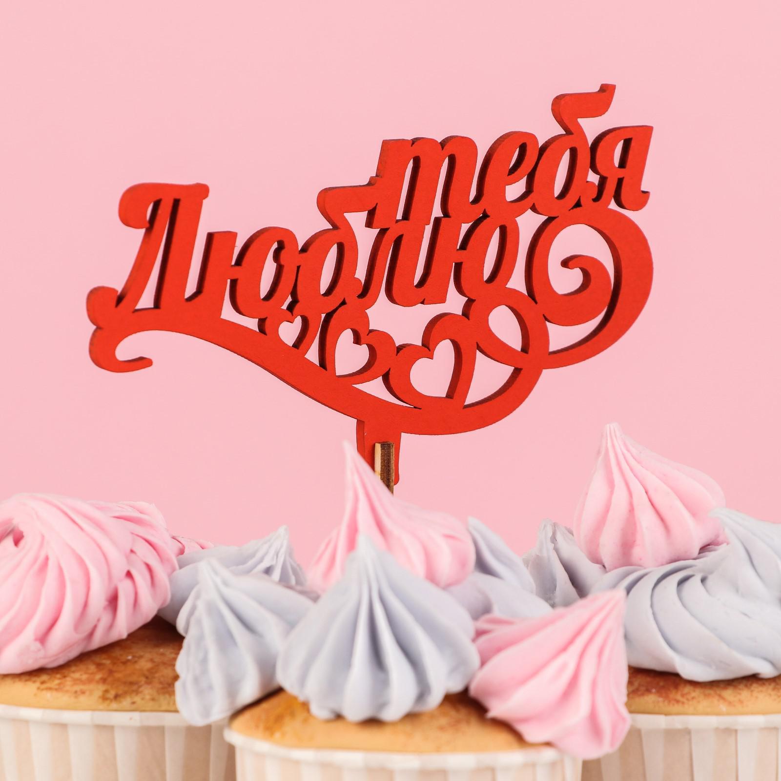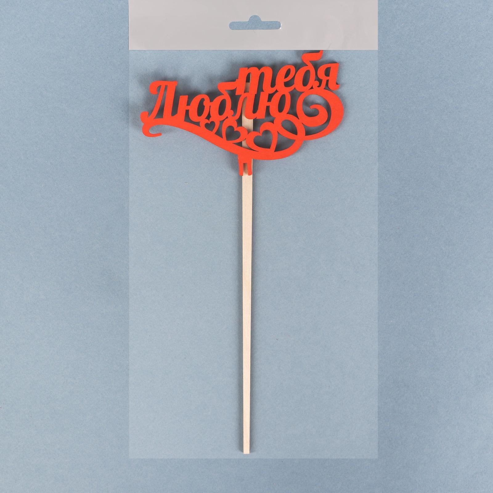 Топпер деревянный "люблю тебя" красный 13х8 см