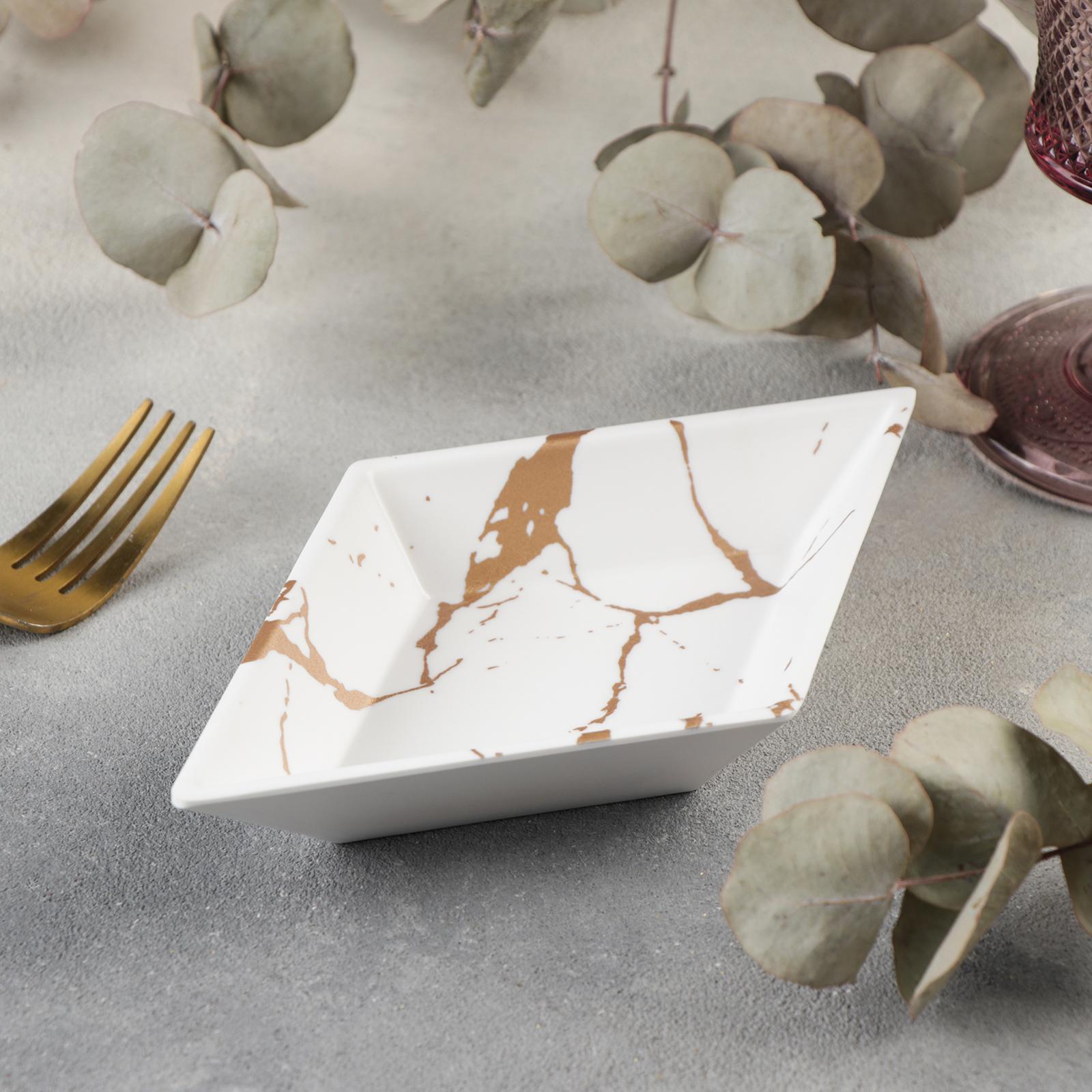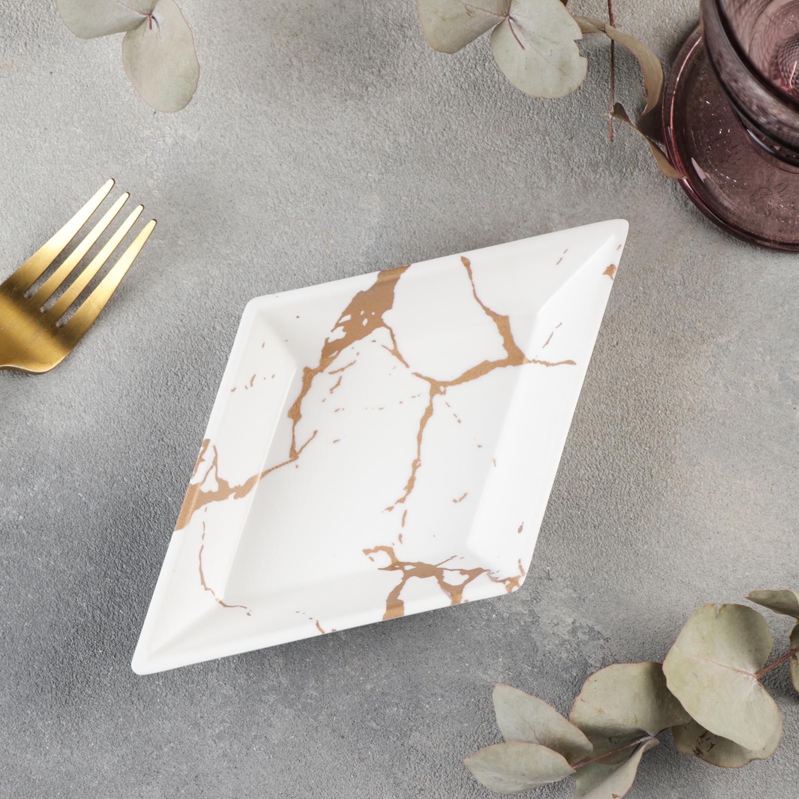 Блюдо фигурное «аура», 18,8x11x2,5 см, цвет бело-золотой
