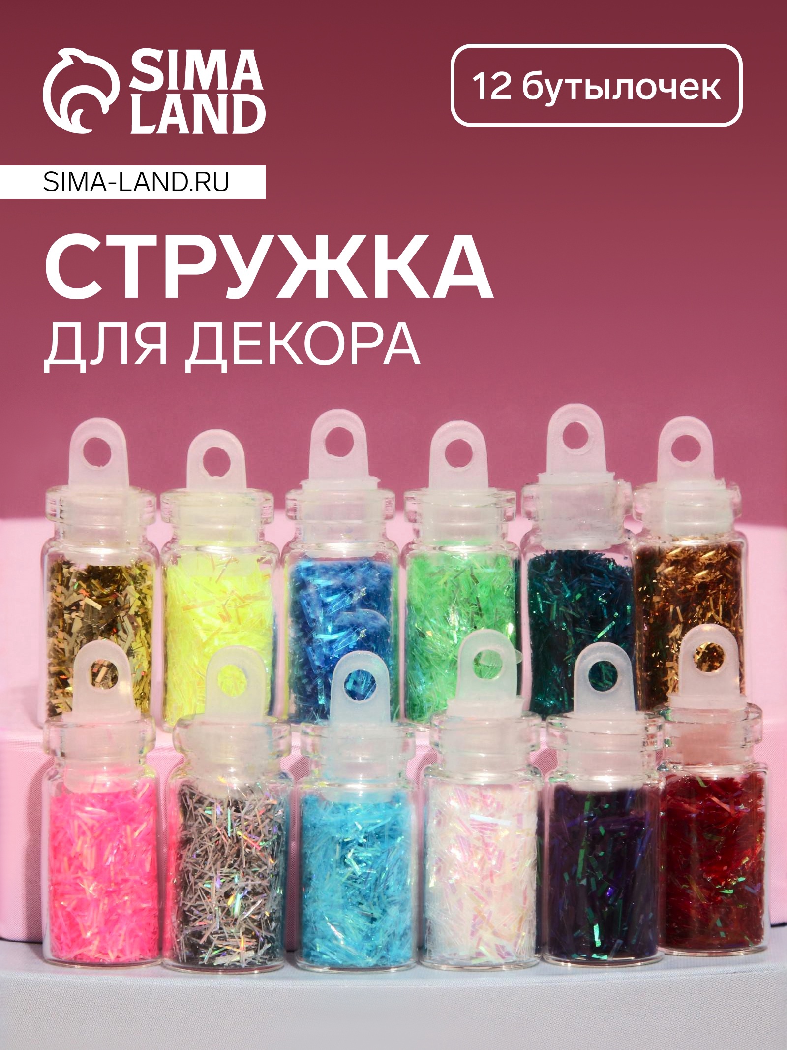 Стружка для декора, 12 бутылочек, разноцветные