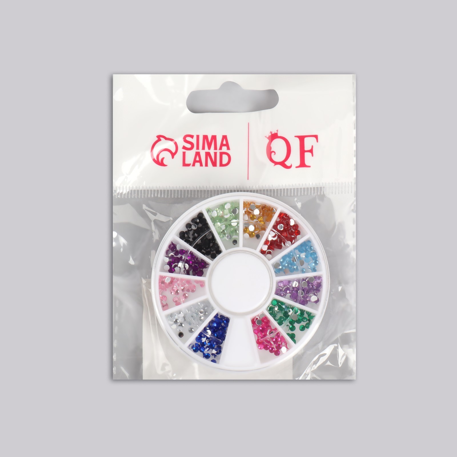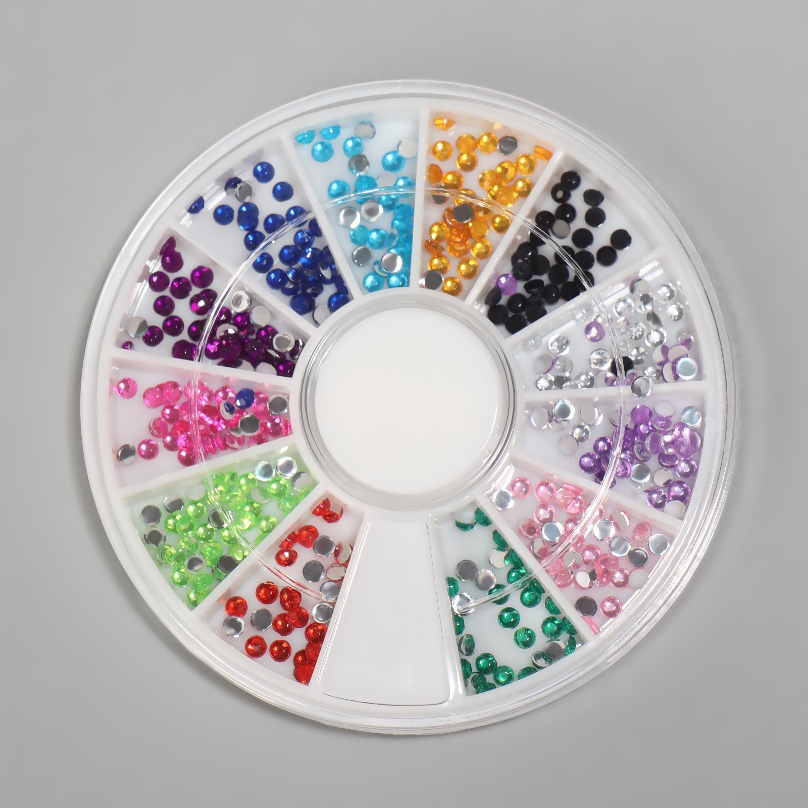Стразы для декора, 12 ячеек, 2 мм, разноцветные