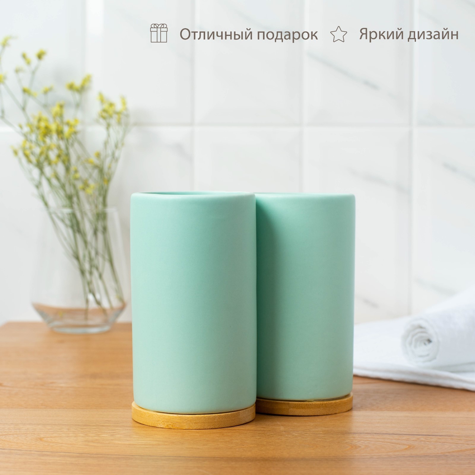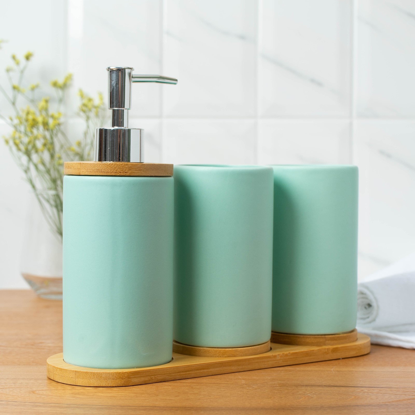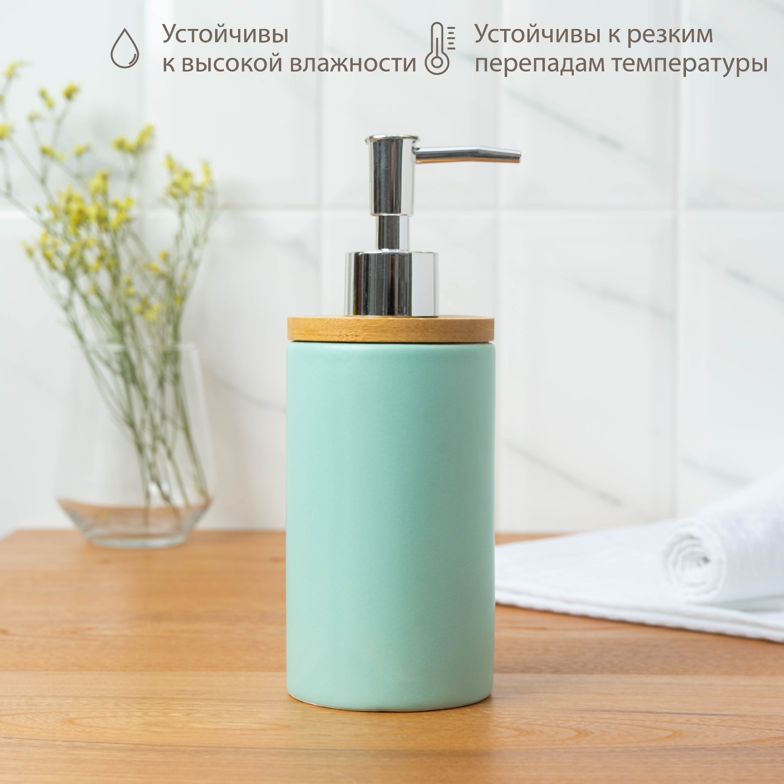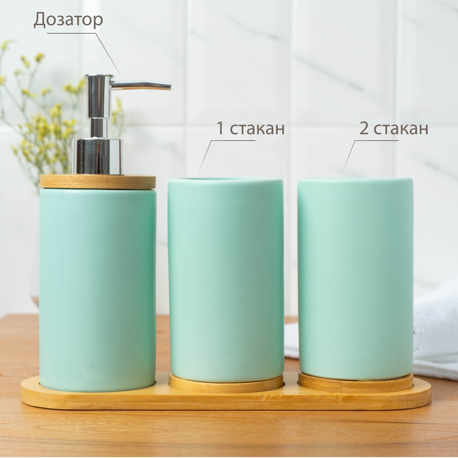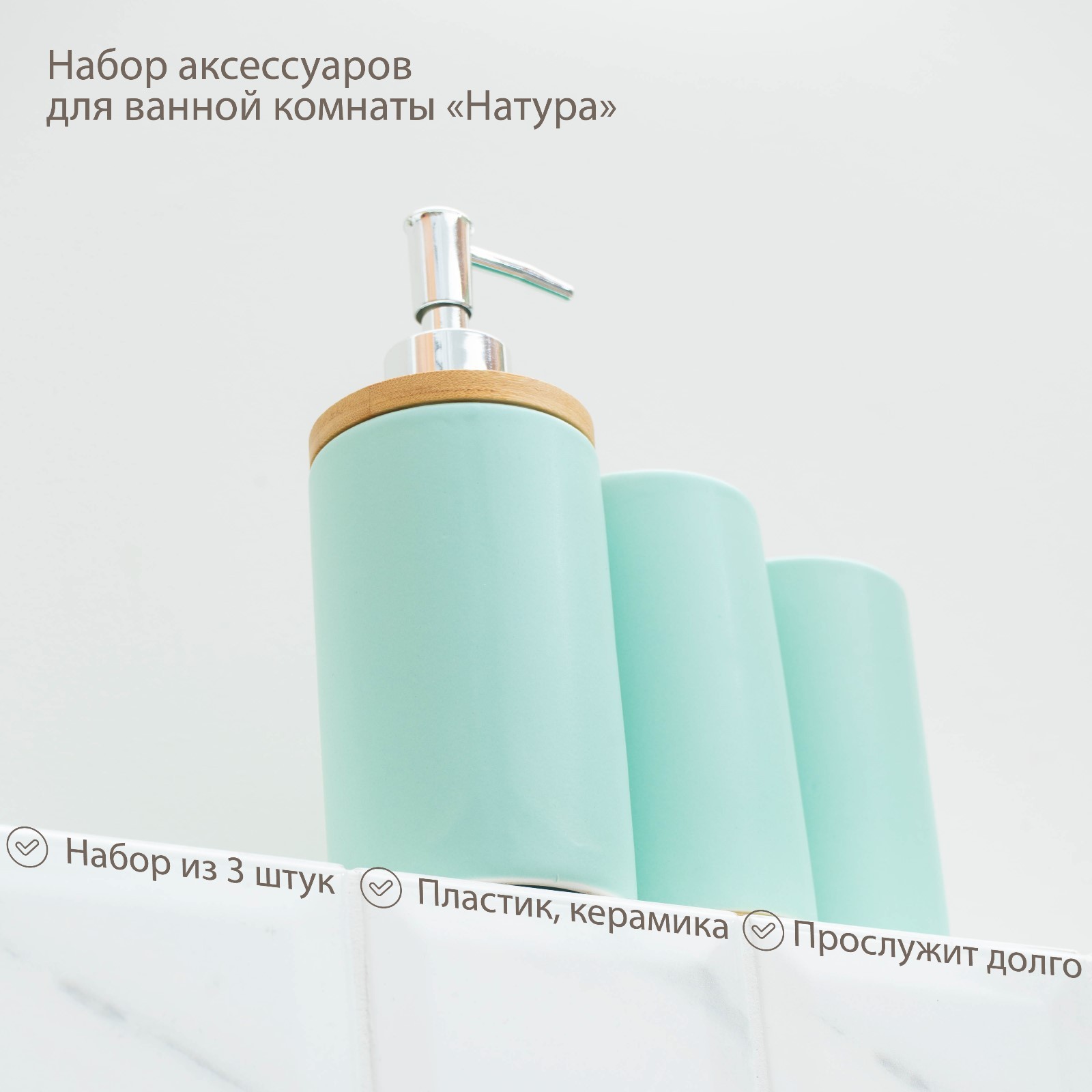 Набор аксессуаров для ванной комнаты «натура», 3 предмета (дозатор 400 мл, 2 стакана, на подставке), цвет мятный