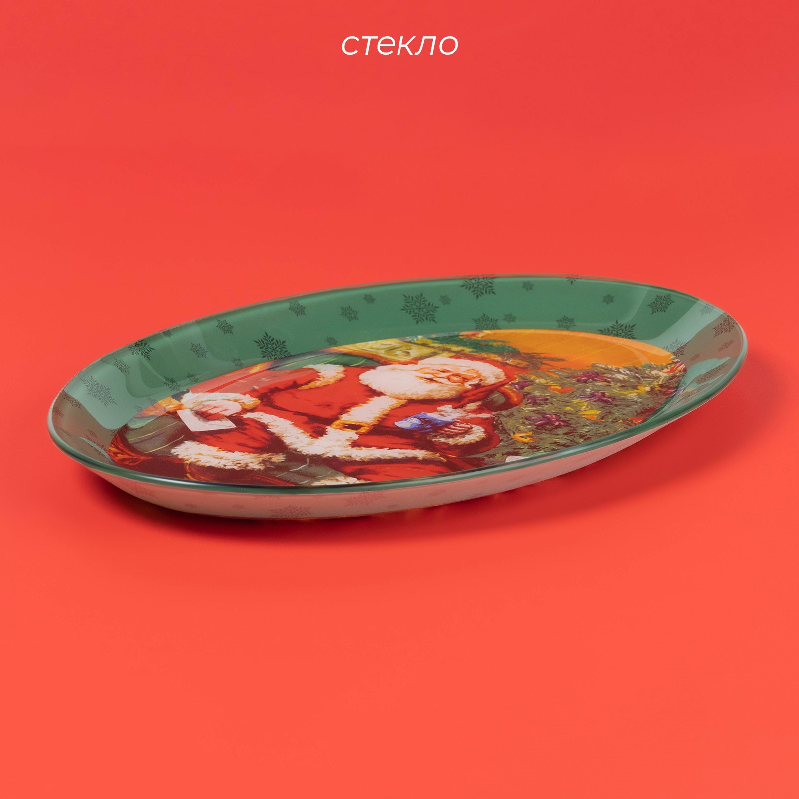 Блюдо новогоднее стеклянное овальное доляна «счастливый санта», 30x21 см. Волшебное время праздников приближается, и чтобы сделать ваши семейные вечера еще более уютными и запоминающимися. Это блюдо идеально подходит для подачи ваших любимых закусок, сладостей и фруктов, привнося в ваш дом дух зимних чудес и атмосферу радости. Яркий, красочный рисунок с Санта Клаусом не только радует глаз, но и создает особое настроение, наполняя каждую трапезу теплом и весельем. Будь то Новый год, Рождество или просто уютный вечер с друзьями, это блюдо станет настоящим центром притяжения, вокруг которого соберутся ваши близкие. Преимущества: Яркий и оригинальный дизайн: Рисунок Санта Клауса добавляет праздничности и делает блюдо настоящим украшением стола. Оно привлекает внимание и создает атмосферу веселья, что несомненно понравится вашим гостям. Высококачественные материалы: Изготовлено из прочного стекла, это блюдо не только выглядит стильно, но и обладает высокой устойчивостью к повреждениям. Вы можете использовать его на протяжении многих сезонов, сохраняя его первозданный вид. Универсальность: Это блюдо идеально подходит для подачи разнообразных угощений: от пирожных до фруктов. Оно легко впишется в любой стиль сервировки, будь то праздничный банкет или домашний ужин. Легкость в уходе: Стеклянная поверхность легко моется и не впитывает запахи, что обеспечивает гигиеничность. Блюдо можно мыть как вручную, так и в посудомоечной машине, что делает его использованием максимально комфортным. Идеальный подарок: Станет чудесным подарком для ваших близких и друзей. Оно не только практично, но и способно создать праздничное настроение, что делает его отличным вариантом для подарка на любой семейный праздник. Цвет: Зелёный Цвет: Разноцветный Форма: Овальная В наборе, шт.: 1 Тематика: Новогодняя Тематика: Праздник Вид упаковки: Без упаковки Материал: Стекло Для детей до 3 лет: Нет Вид тарелки: Плоская Можно мыть в посудомоечной машине: Да Можно использовать в СВЧ-печи: Нет Текстура: Гладкая Особенности: Без особенностей Для горячего: Нет Форма: Овал  развернуть описание ▼