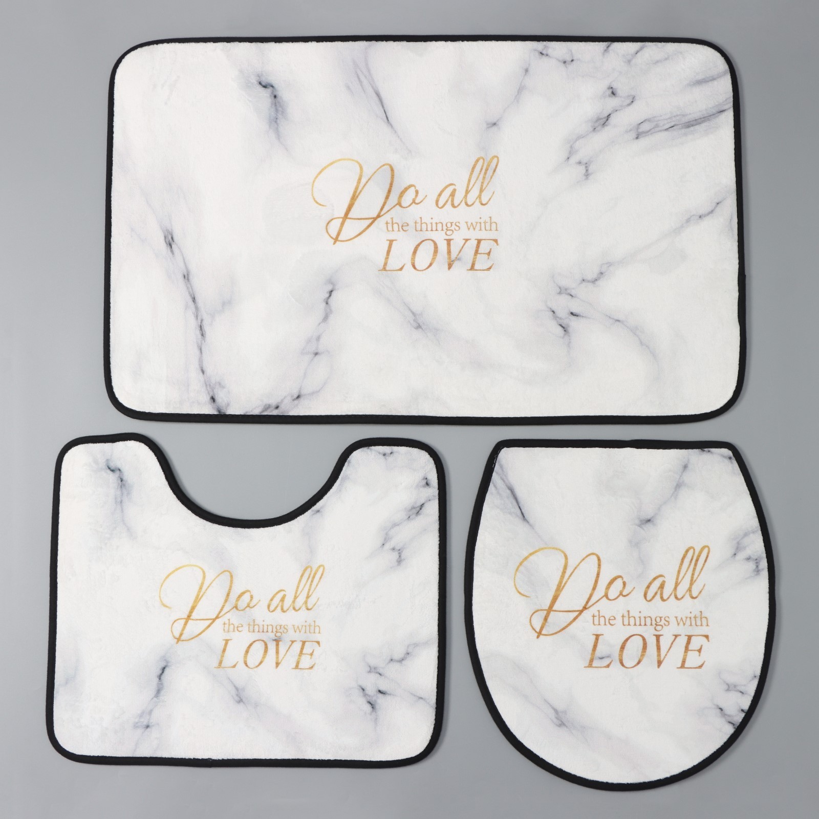 Набор ковриков для ванны и туалета доляна «мрамор», 3 шт: 50x80, 45x50, 38x43 см, цвет серый