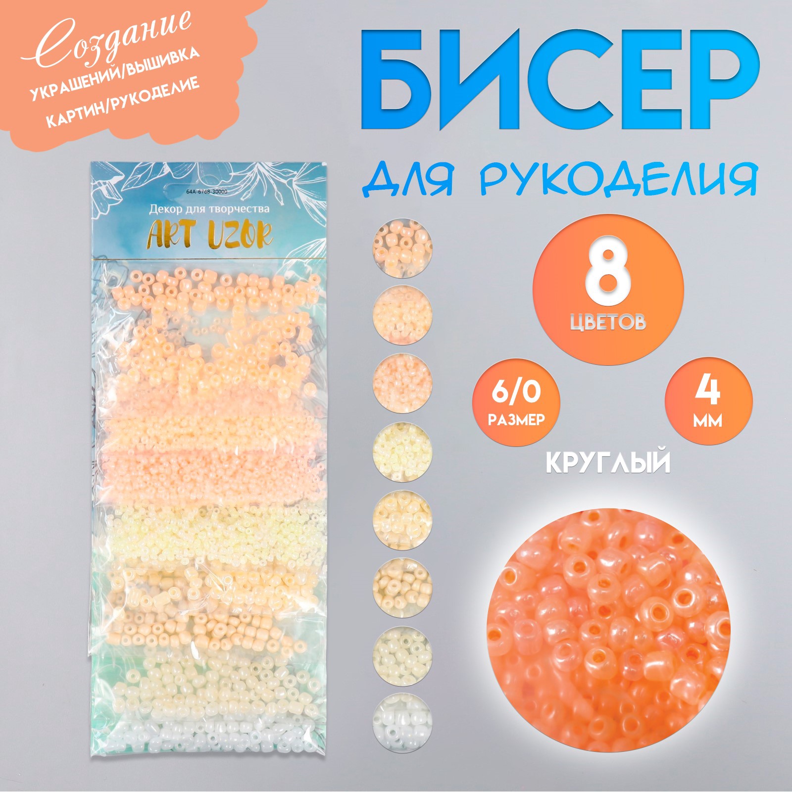 Набор бисера для плетения круглый «арт узор. нежные цвета бело-жёлто-розовый», 8 цветов 10 г, для рукоделия