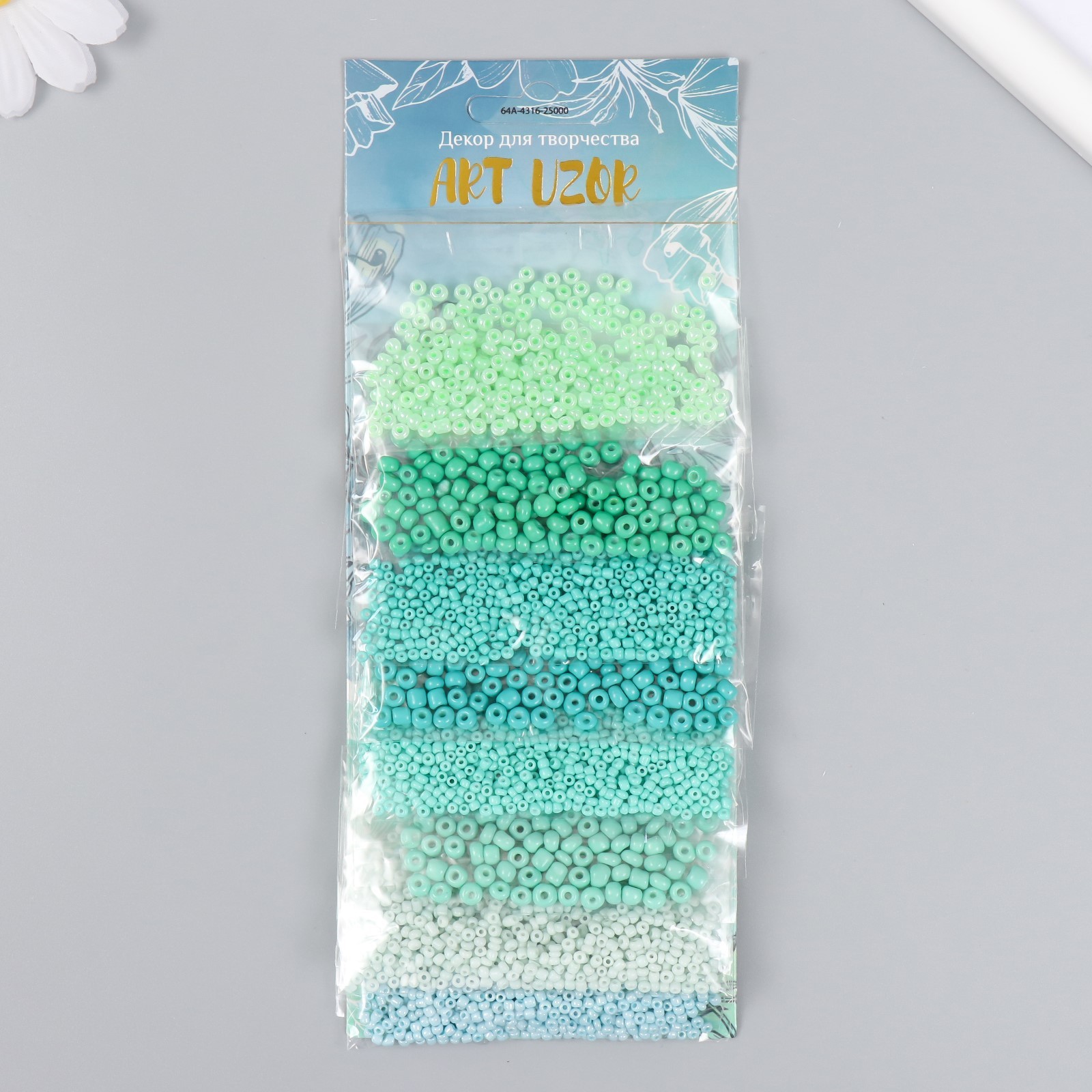 Набор бисера для плетения круглый «арт узор. оттенки зелёного» 8 цветов 10 г, для рукоделия