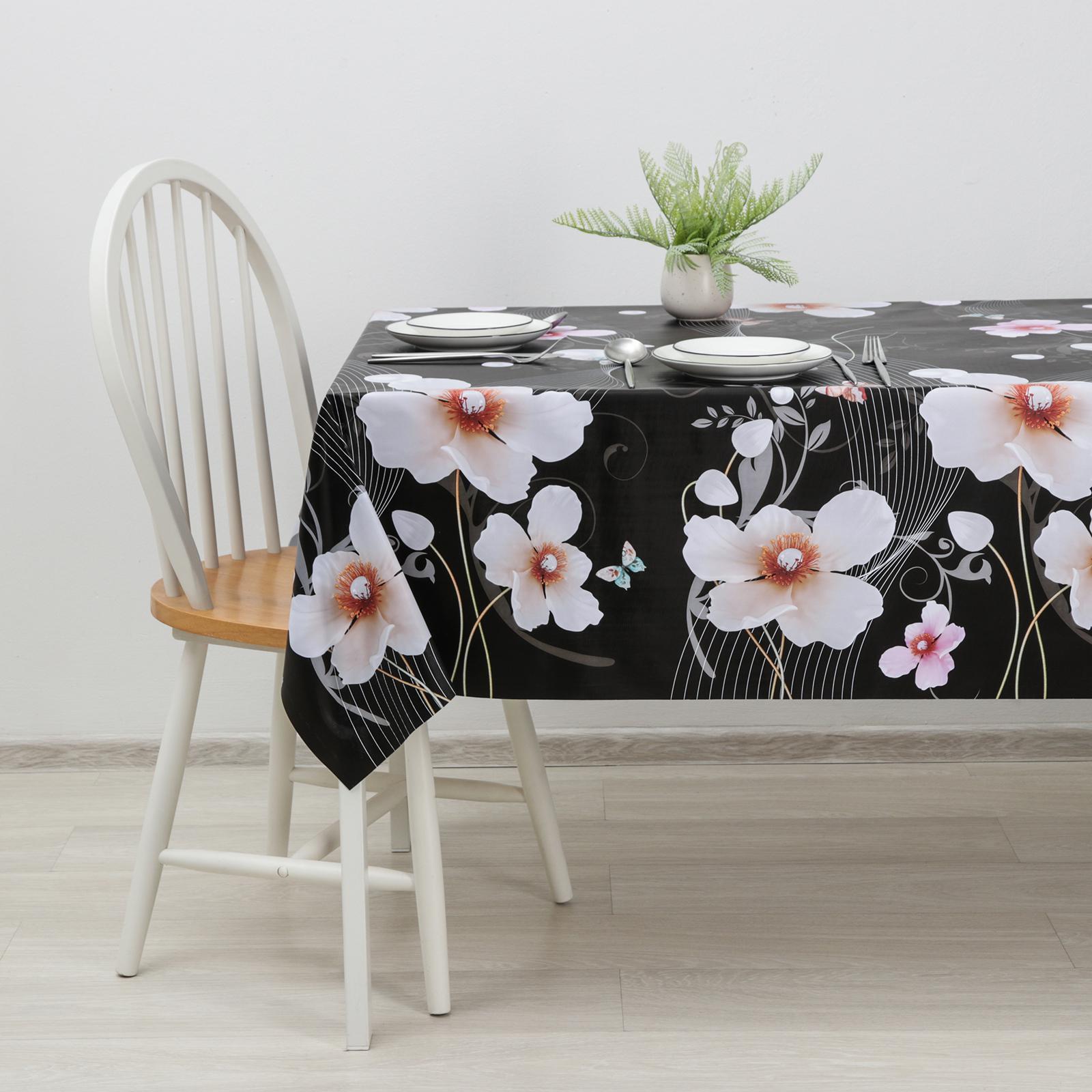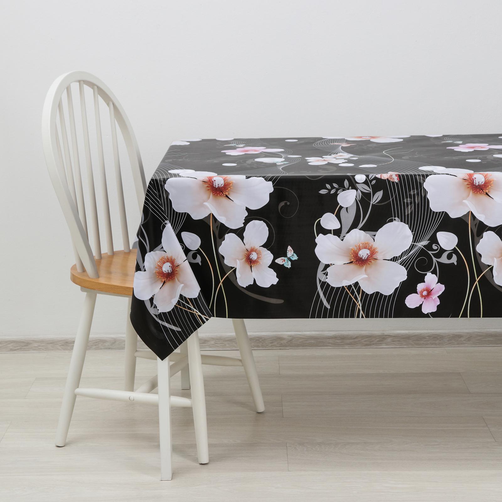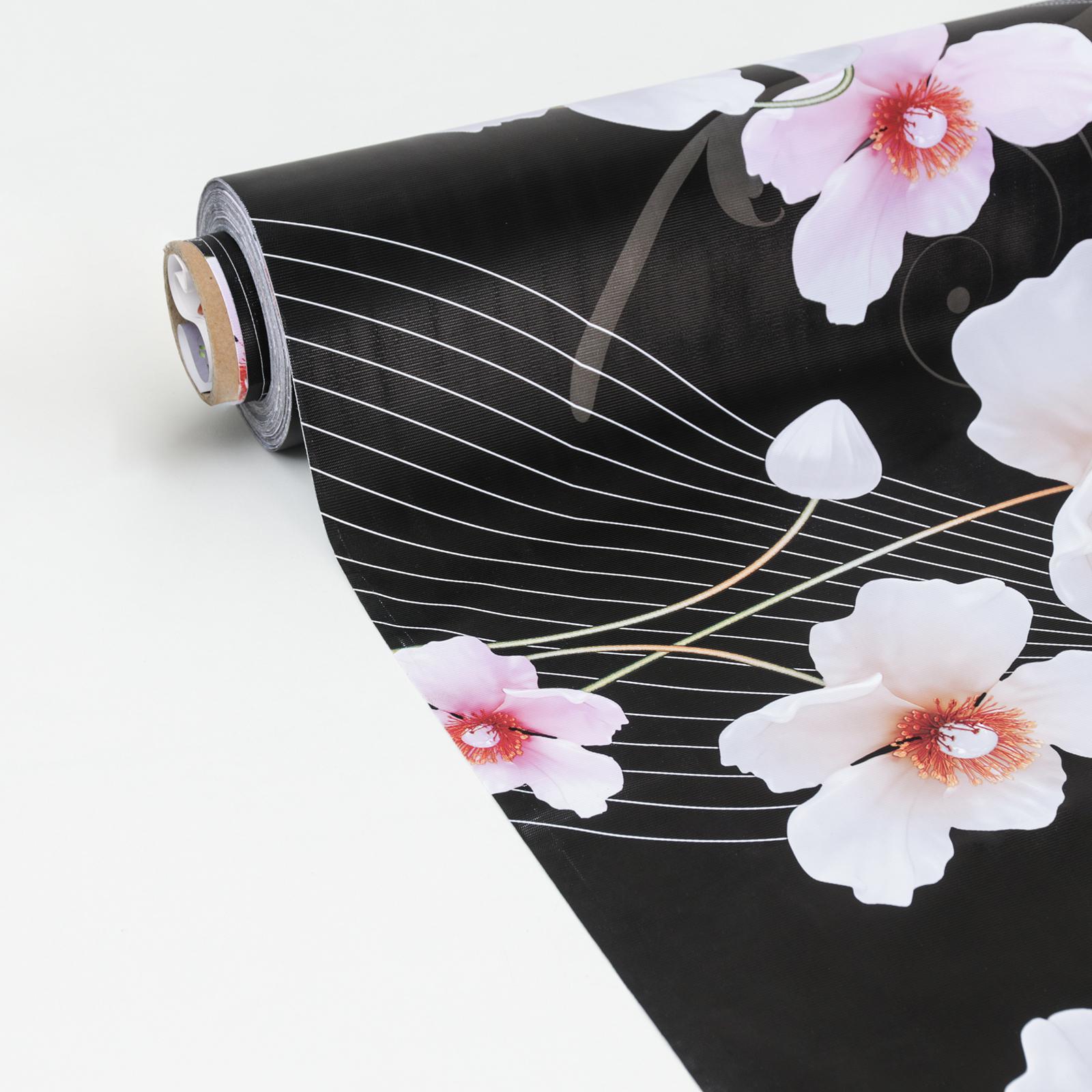 Клеёнка на стол на тканевой основе «мелодия цветов», ширина 137 см, рулон 20 м, толщина 0,25 мм, цвет чёрный
