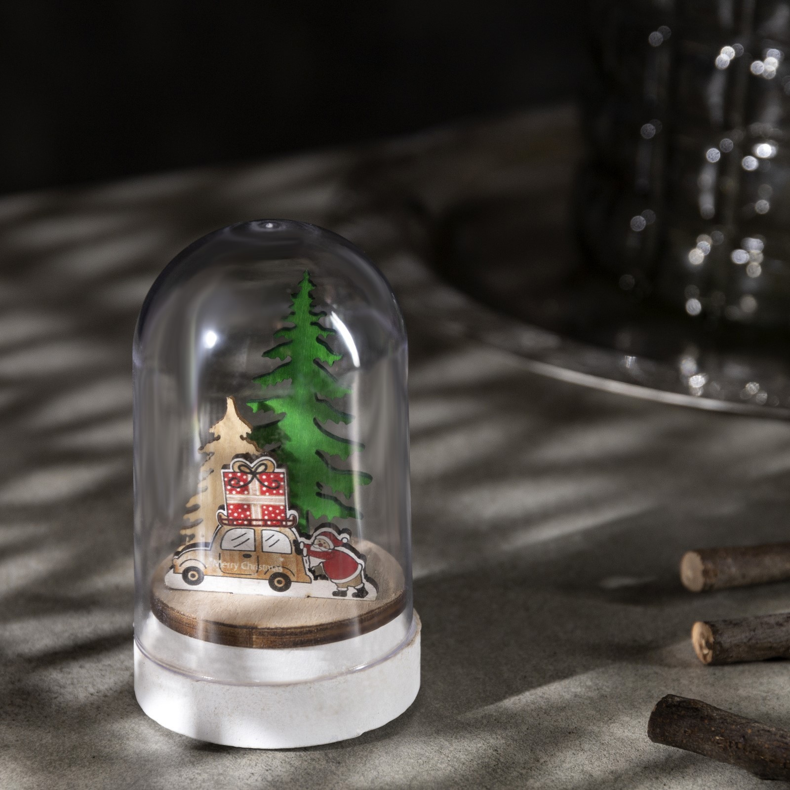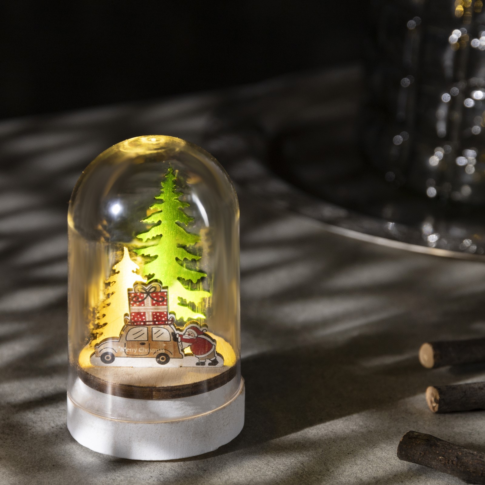 Светодиодная фигура под куполом «машина с подарками» 6 9.5 6 см, дерево, батарейки lr1130х3 (нет в комплекте), свечение тёпл. Разнообразные новогодние световые фигуры – это прекрасный вариант оформления к Новому Году и любому другому торжеству, а также отличное дополнение интерьера. Такие фигуры довольно активно используются в качестве светового оформления различных кафе, торговых центров, магазинов и ночных клубов, для создания новогоднего оформления в доме, офисе, и даже на улице. Насыщенные цвета и экологическая безопасность обеспечивает их высокую популярность как среди профессионалов, так и у бытовых потребителей. Преимущества: Продуманный ассортимент, отвечающий современным тенденциям рынка и любым, самым требовательным, запросам наших клиентов;Высокое качество сборки и многоступенчатый контроль качества на всех этапах производства;Неповторимая праздничная упаковка Luazon Lighting, доставляет радость и атмосферу праздника каждому покупателю;Возможность с помощью освещения создать собственную неповторимую атмосферу;Комфортная для глаз цветопередача. Цвет свечения:Тёплый белый|Режим работы:Постоянное свечение|Высота, см:9.5|Количество светодиодов:1|Гарантийный срок, мес.:6|Тематика праздника:Новый год|Типоразмер батареек:LR1130|Материал:Дерево|Материал:Пластик|Тип питания:От батареек|Эффект снежного вихря:Нет|Стиль:Скандинавский|Страна:Китай  развернуть описание ▼