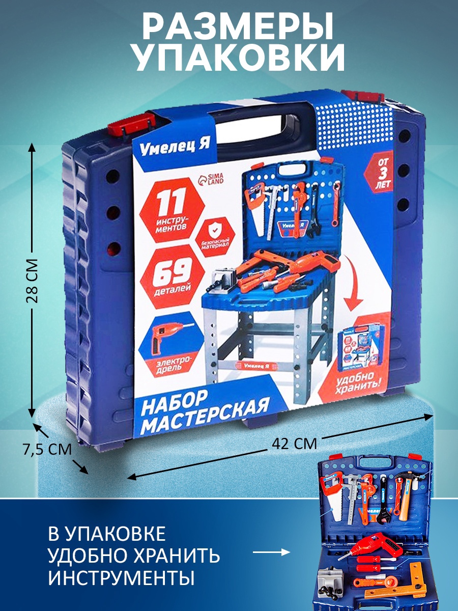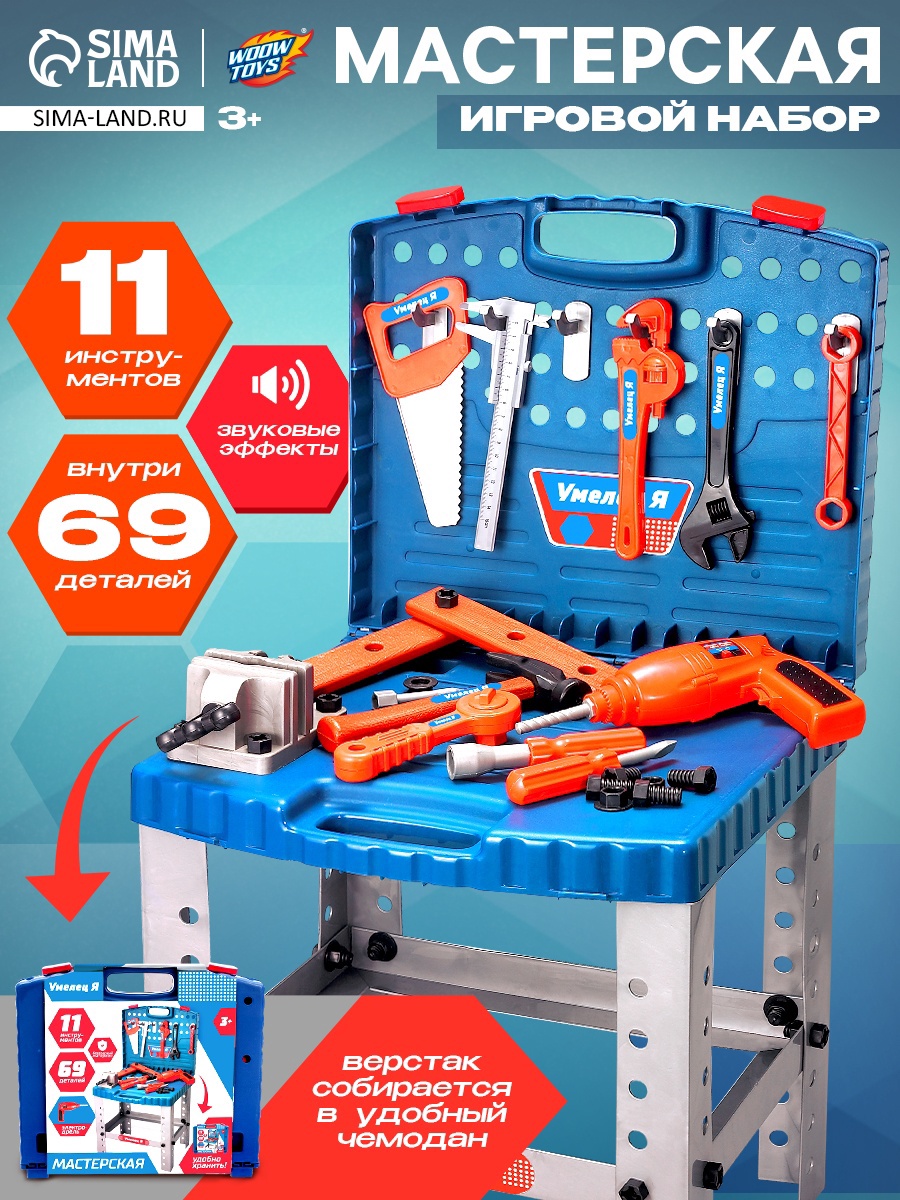 Игровой модуль в чемодане «умелец я», 69 элементов, со звуковыми эффектами, работает от батареек