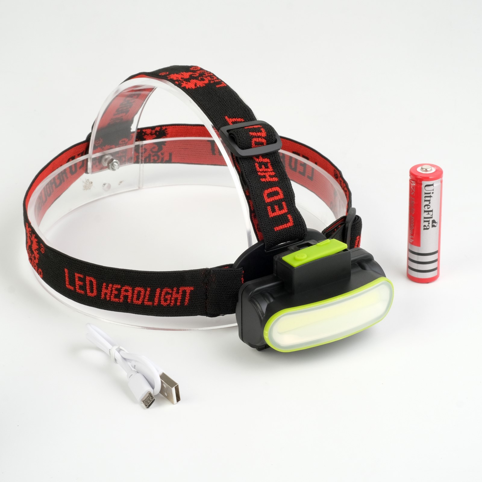 Фонарь налобный аккумуляторный 10 вт, 1200 мач, Cob, 2 режима, 8 х 6 х 5 см, Usb