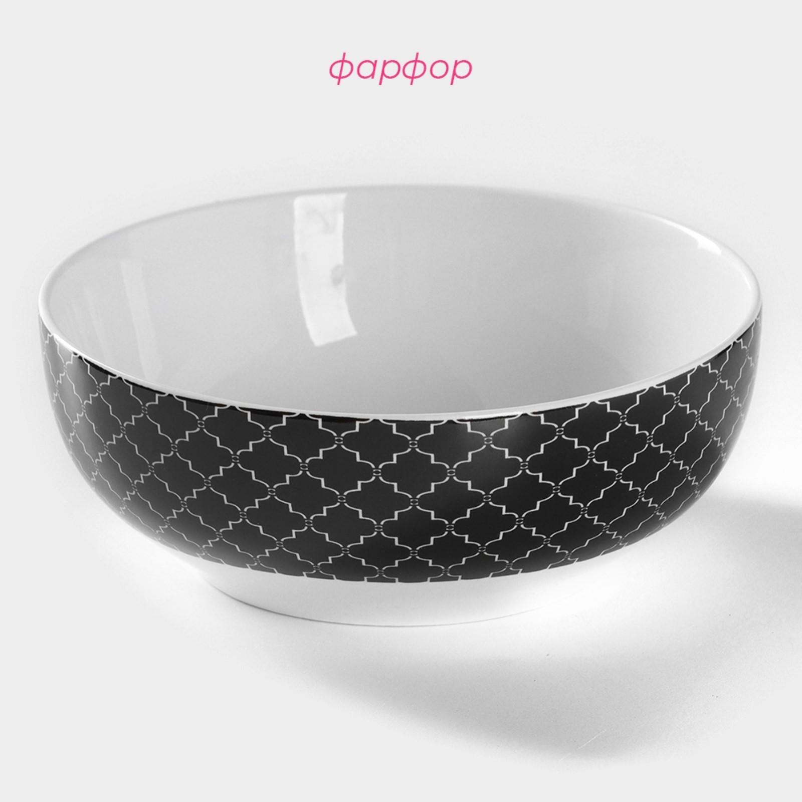 Салатник фарфоровый доляна «марокко», 600 мл, D=15,5 см, цвет чёрный