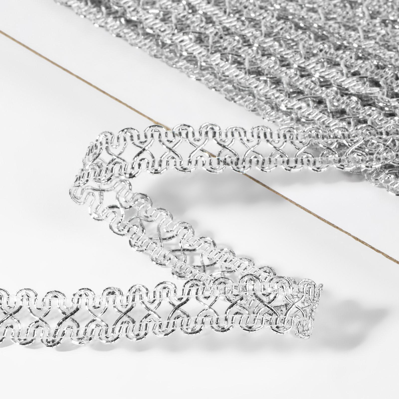 Тесьма декоративная «песочные часы», 14 мм, 10±1 м, цвет серебряный