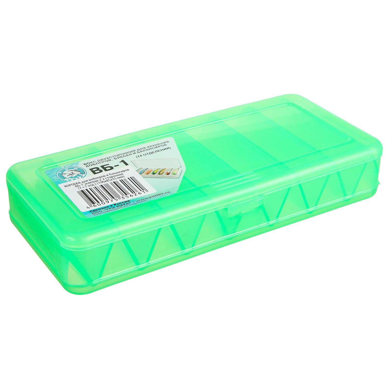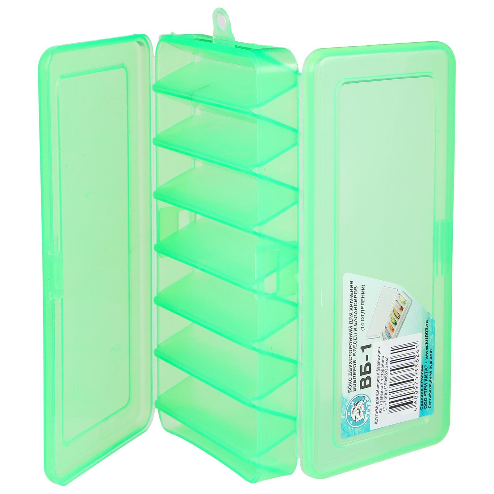 Коробка для воблеров и балансиров вб-1, цвет зелёный, 2-сторонняя, 7+7 отделений, 190 X 85 X 35 мм