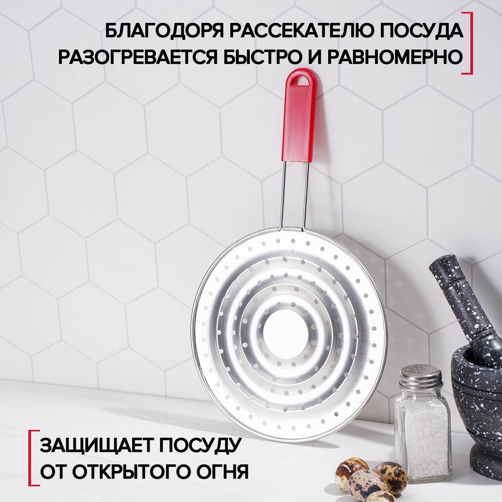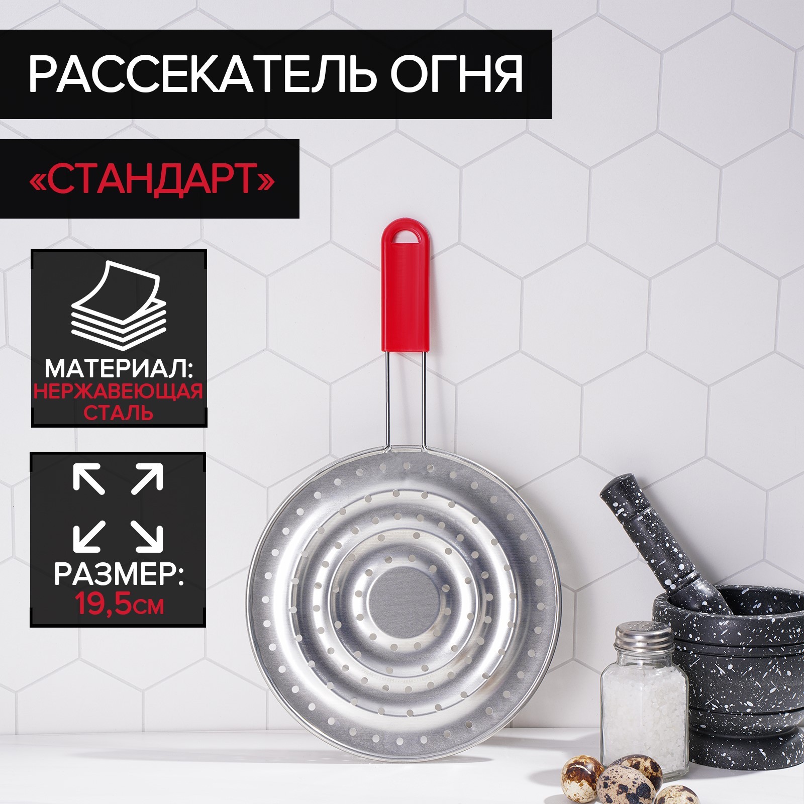 Рассекатель огня доляна «стандарт», D=19,5 см, нескладная ручка, цвет красный