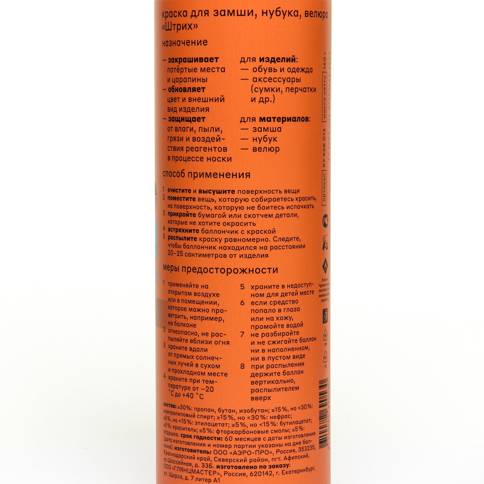 Краска аэрозоль 250 мл для замши, нубука, велюра "штрих" основной уход, черная