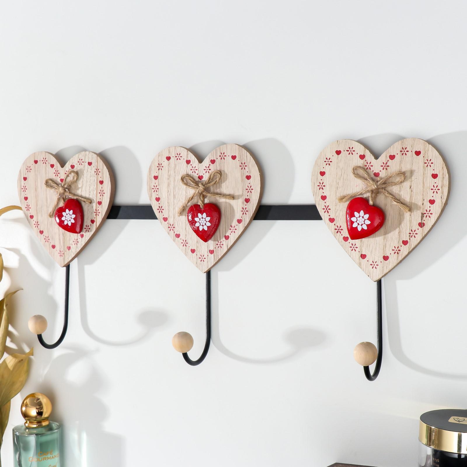 Крючки декоративные дерево "рамка из сердец" 8х41,5х5,7 см