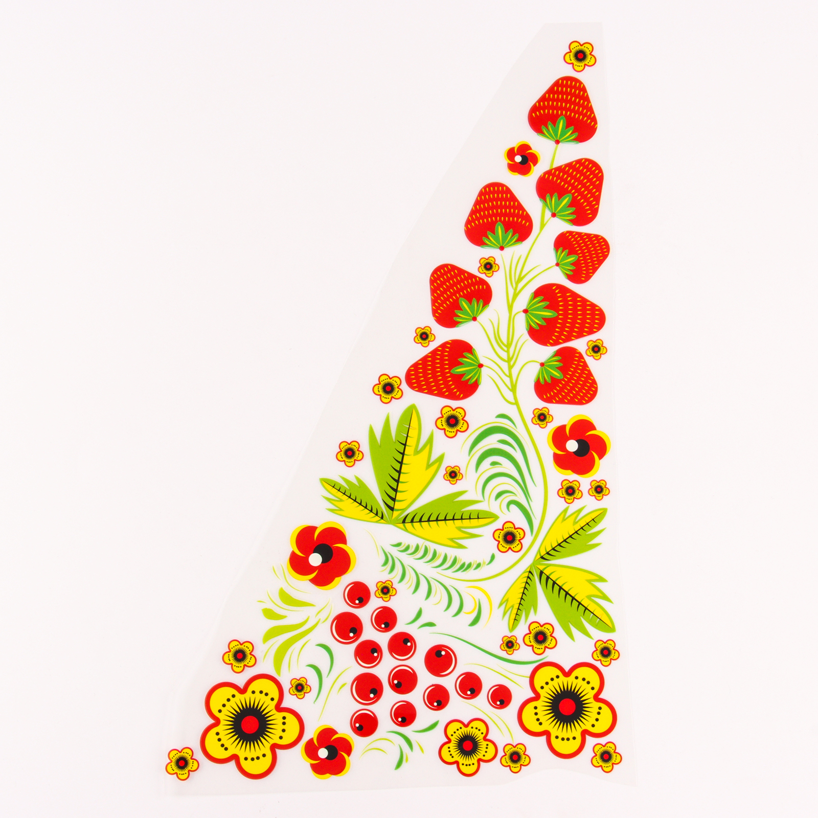 Термонаклейка «хохлома ягодки», уголок слева, 20 35 см, набор 10 шт.. Термонаклейка — отличный способ декорирования и придания изящности вашим изделиям. Термонаклейка подходит для хлопчато-бумажных, льняных и смесовых тканей, а также для многих видов синтетических тканей. Поможет скрыть дефекты или пятна на одежде. Особенности Материал ПВХ — обеспечивает долговечность и стойкость рисунка. Температура переноса — 140 - 150 °C. Время переноса — 10 секунд.Размер: 20 х 35 см — подходит для декора как крупных, так и маленьких изделий. Инструкция Предварительно разгладить и прогреть тканевую основу утюгом 3-5 секунд.Положить термонаклейку к тканевой основе подложкой вверх.Накрыть сверху листом или калькой и прижать утюгом на 10-12 секунд.Удалить подложку. Такая заплатка будет стильно смотреться на любой одежде.Набор:Да|Цвет:Разноцветный|Цвет:Красный|Для кого:Для женщины|Для кого:Для девочки|В наборе, шт.:10|Тематика:Ягоды|Тематика:Цветочно-растительная|Тематика праздника:Универсальная тематика|Материал:ПВХ|Двусторонний:Нет|Возраст:Для взрослых|Особенности :Без особенностей|Страна:Китай  развернуть описание ▼