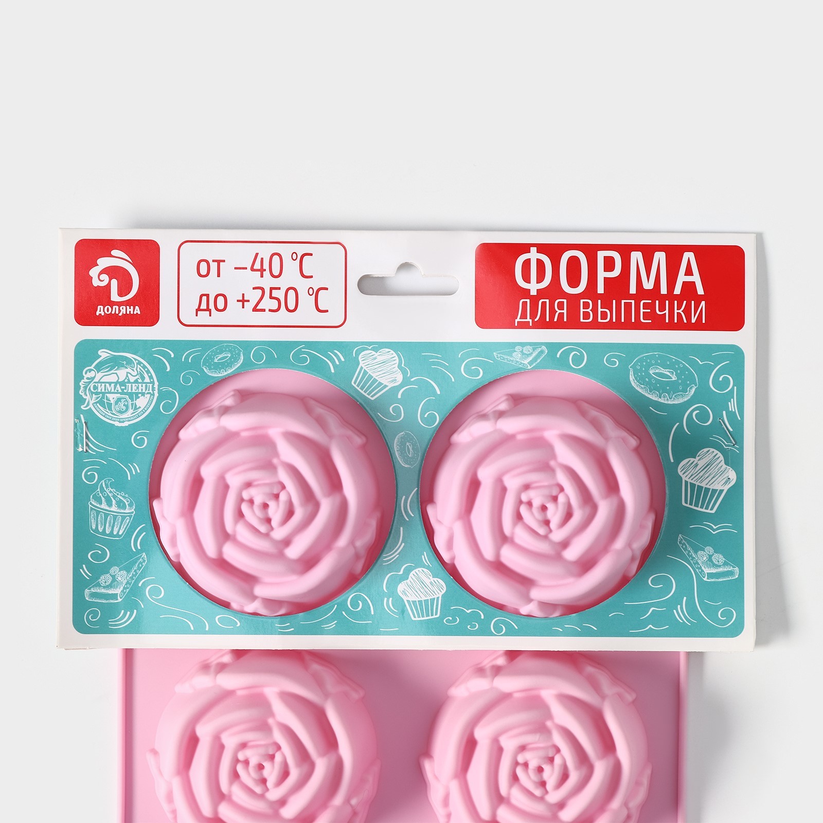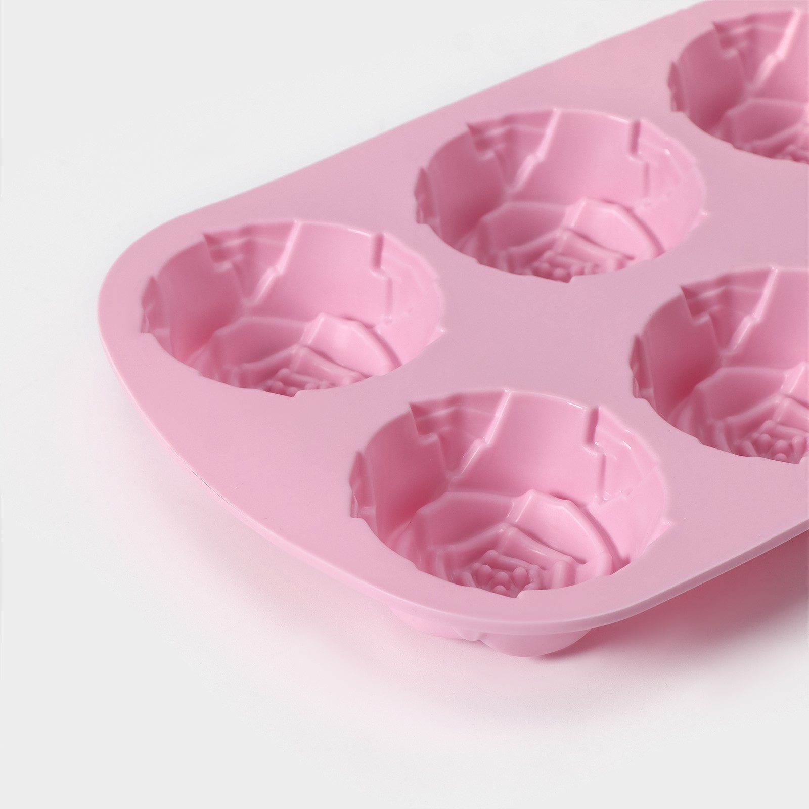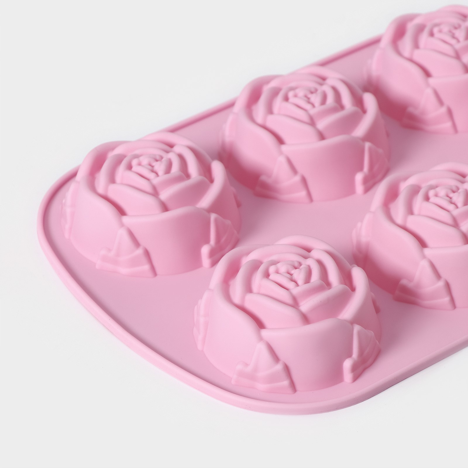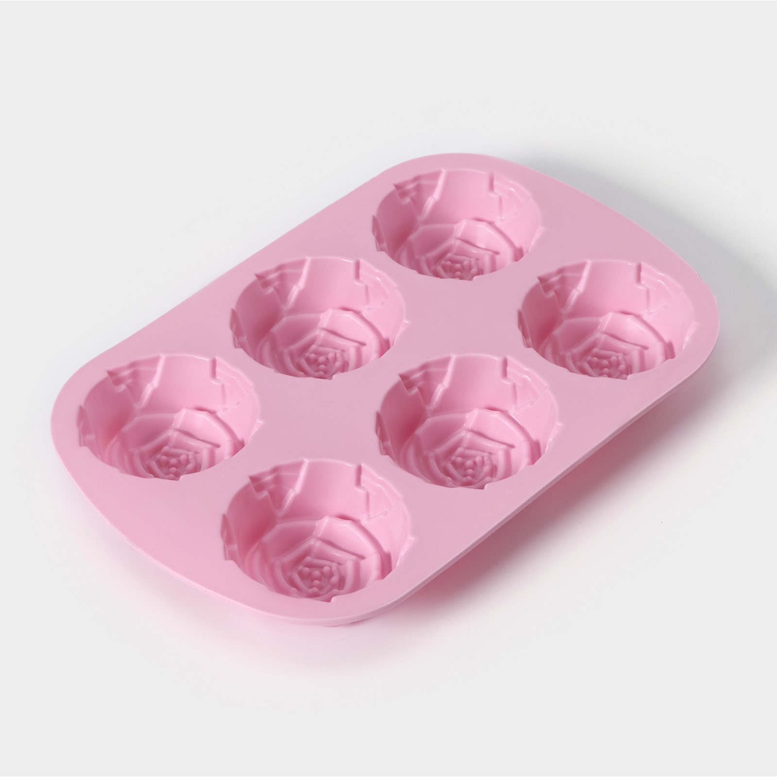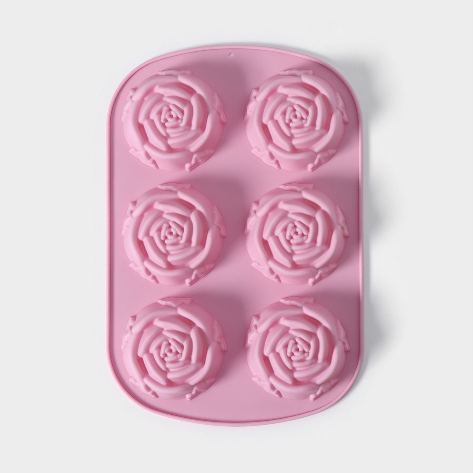 Форма силиконовая для выпечки доляна «роза», 26x17,5 см, 6 ячеек, цвет микс