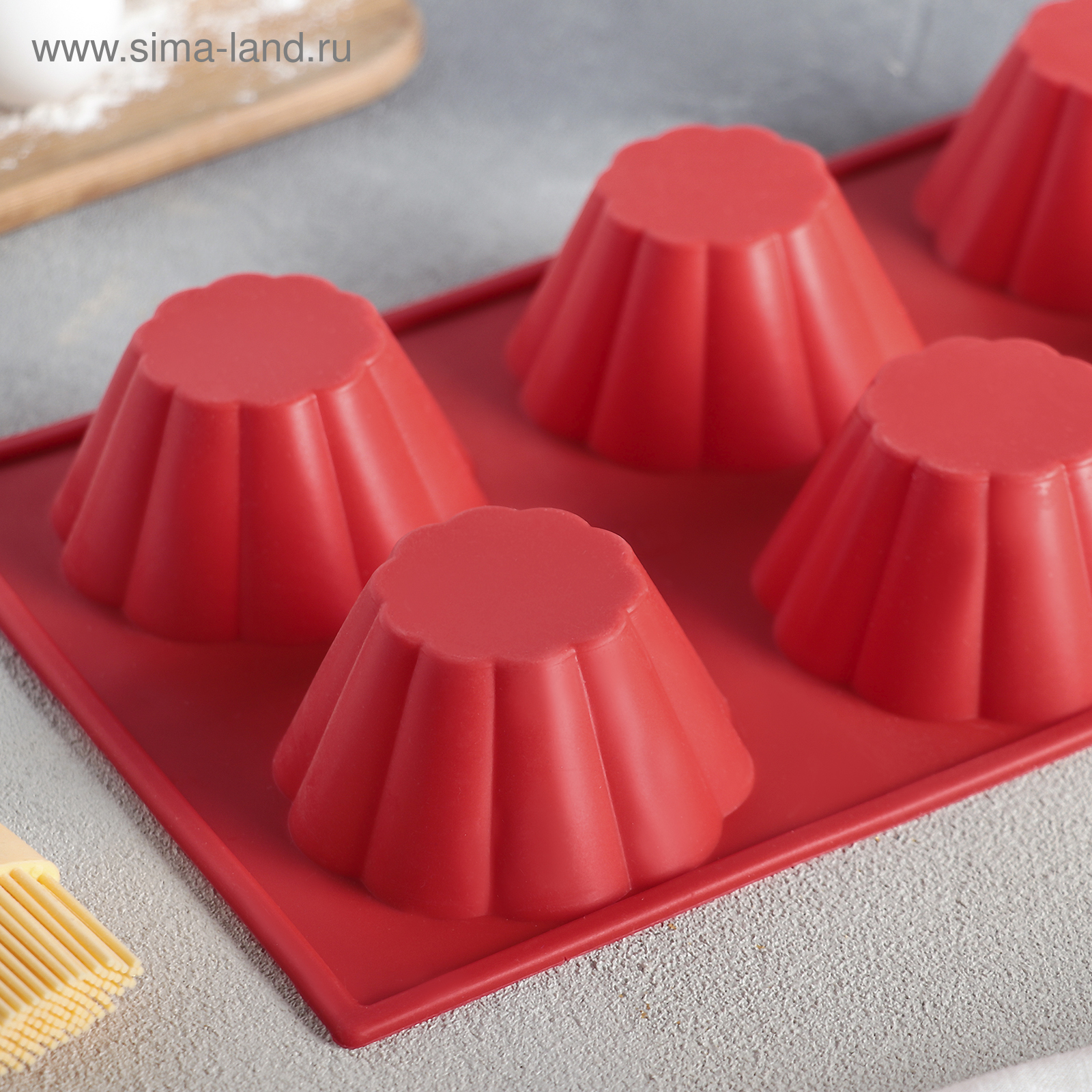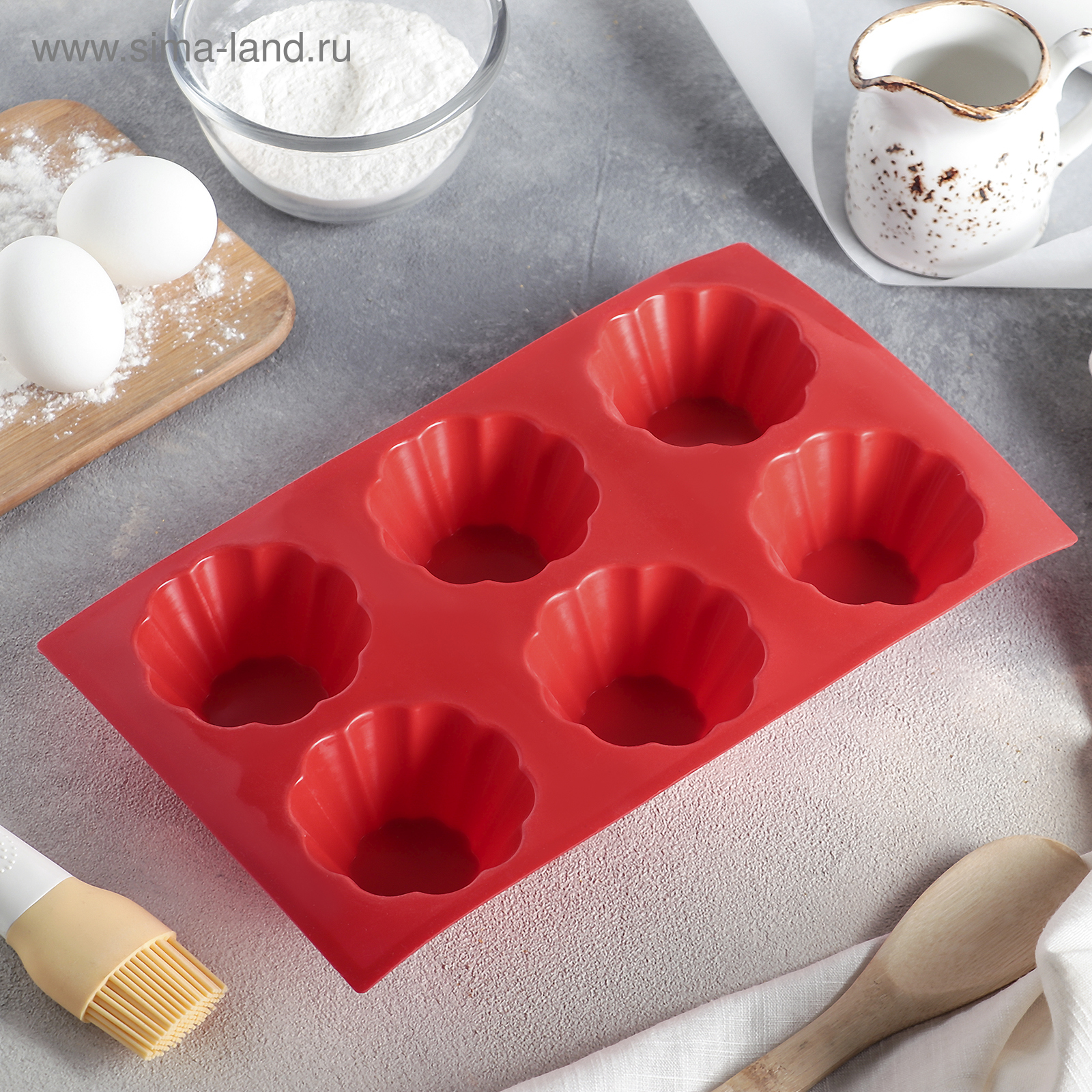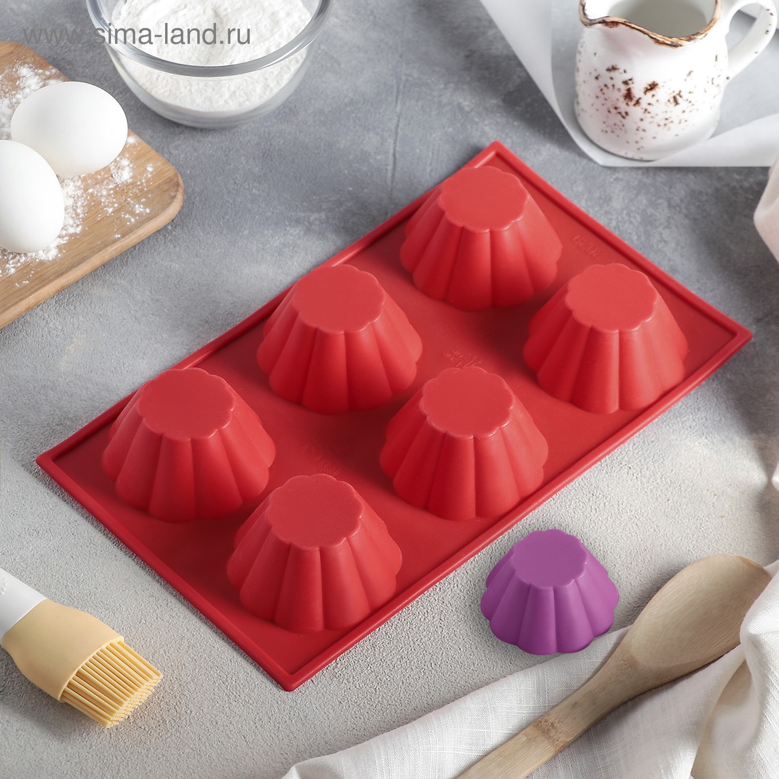 Форма силиконовая для выпечки доляна «пудинг», 29,5x17,5 см, 6 ячеек (7x7x4 см), цвет микс