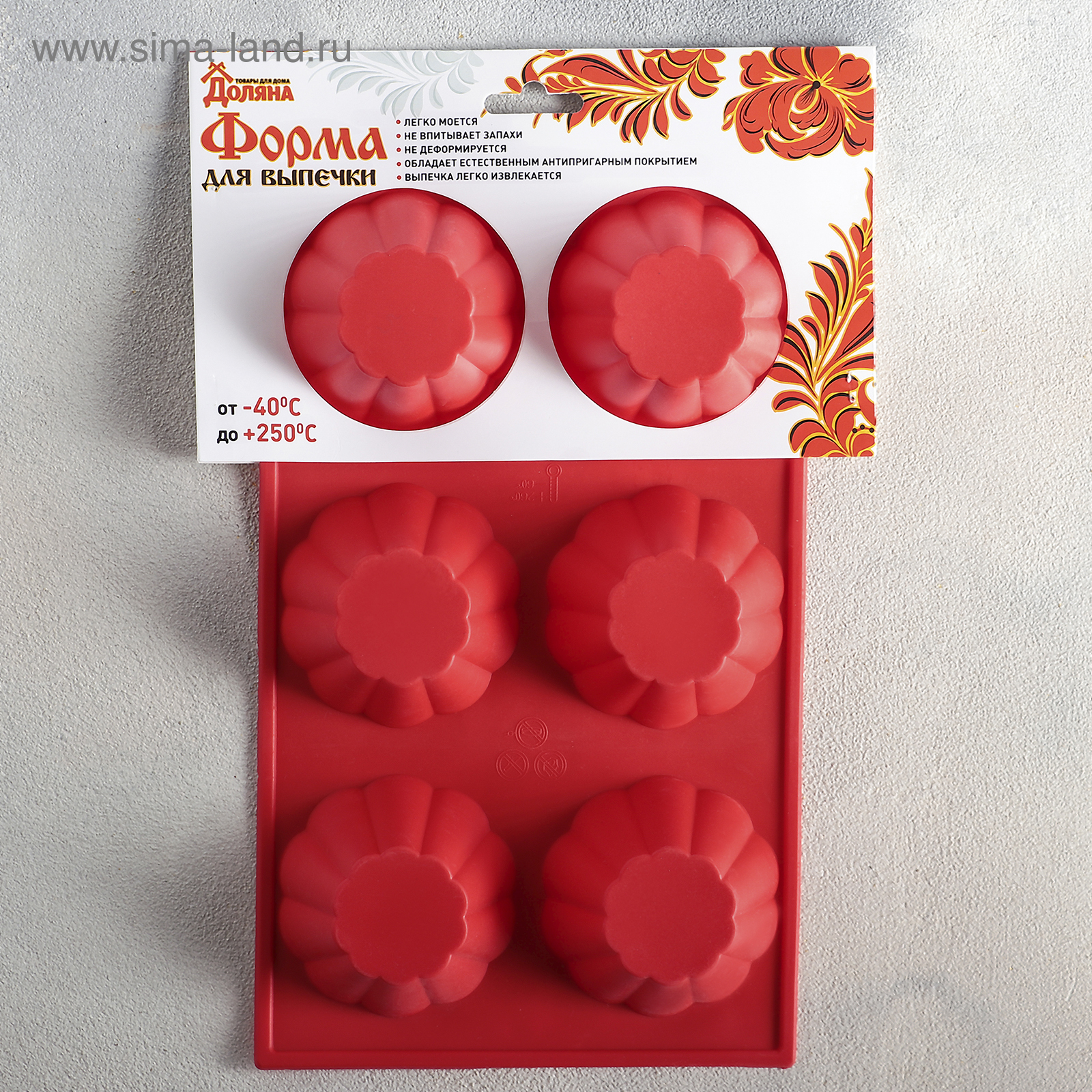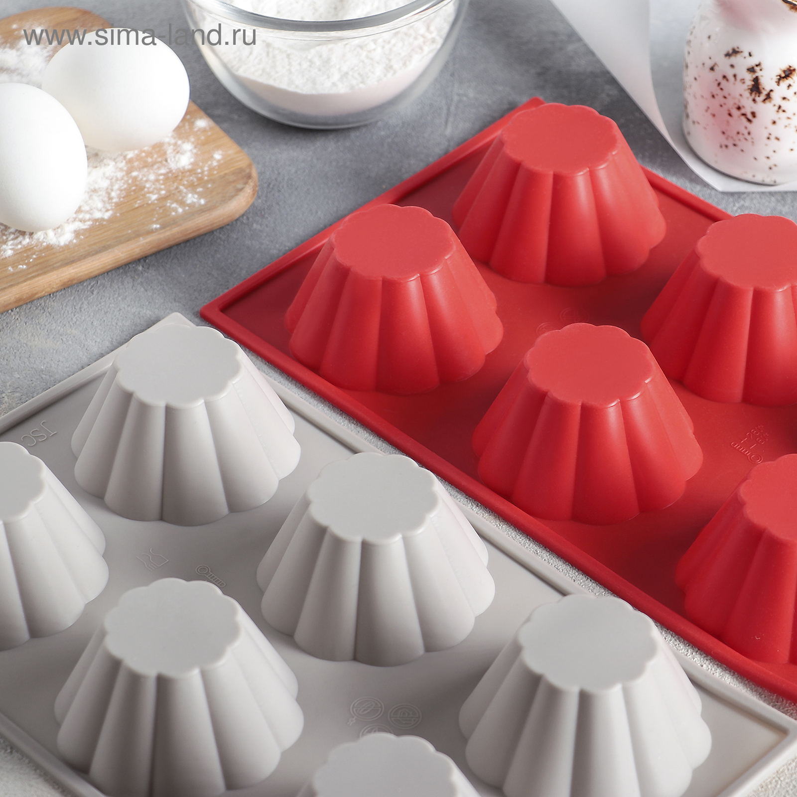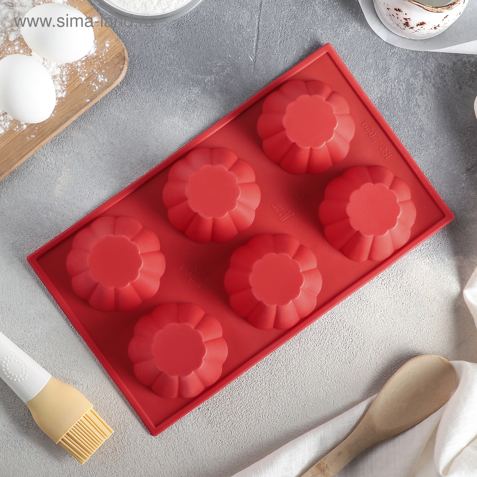 Форма силиконовая для выпечки доляна «пудинг», 29,5x17,5 см, 6 ячеек (7x7x4 см), цвет микс