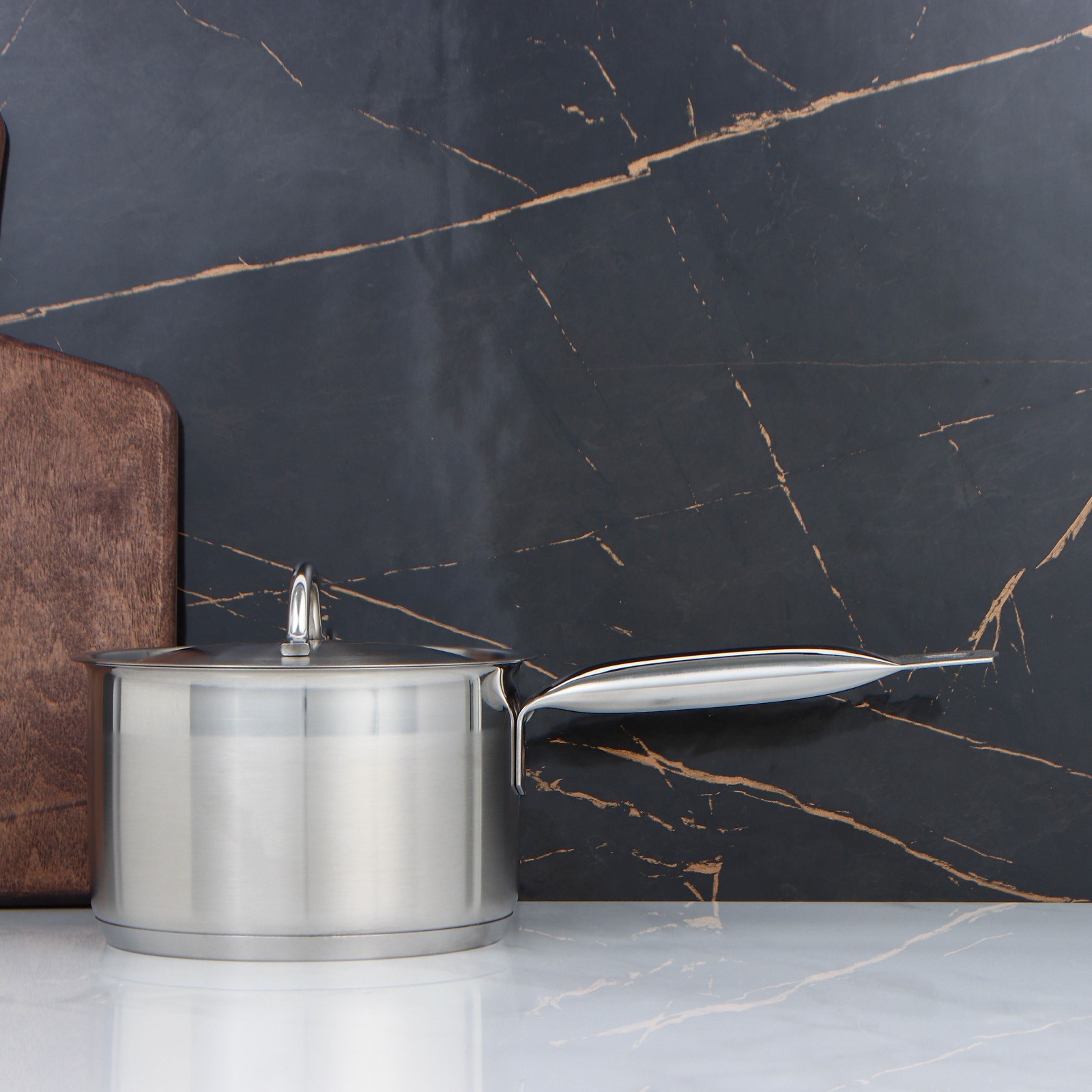 Сотейник, 2 л, D=16 см, H=10 см, металлическая крышка, тройное дно, индукция, цвет серебряный