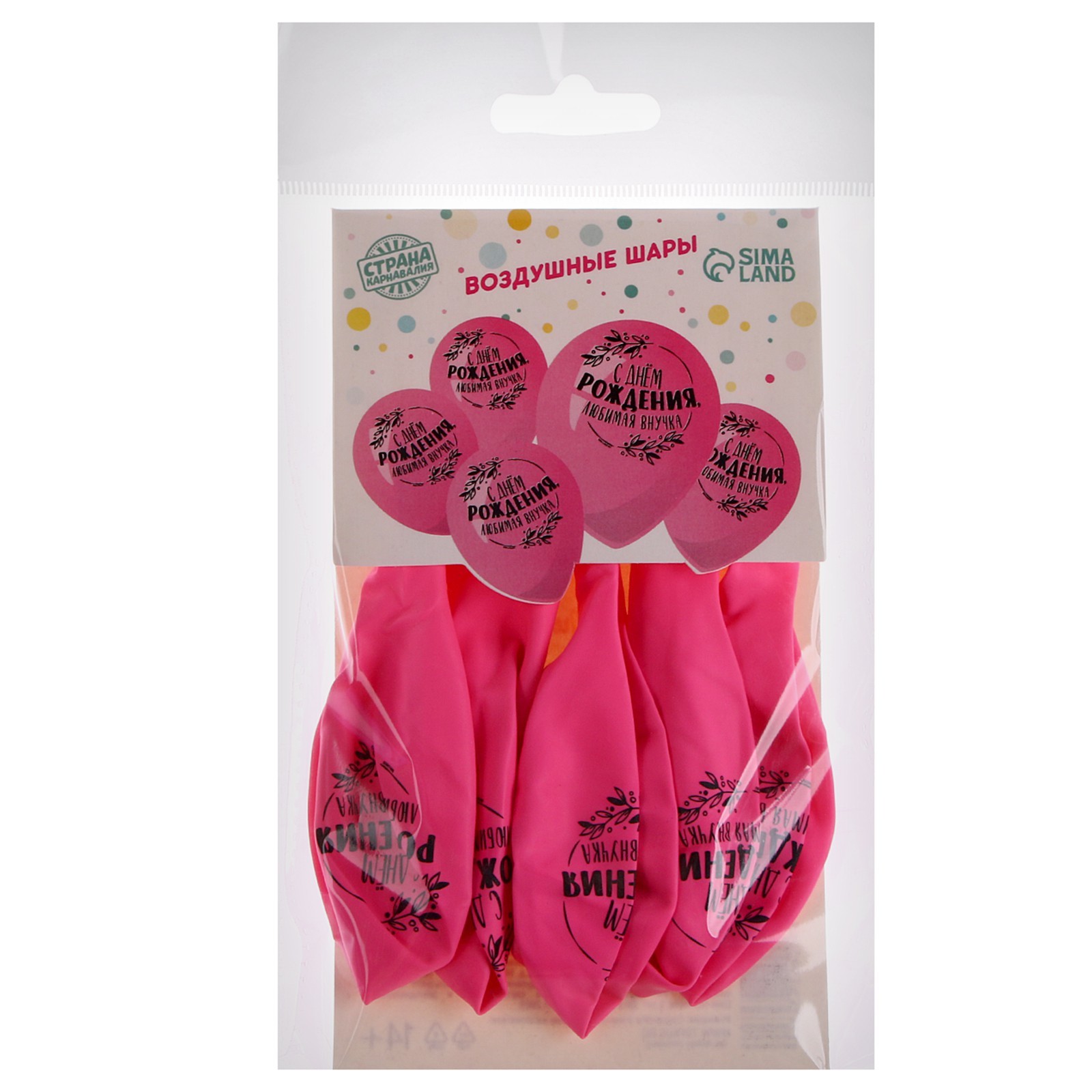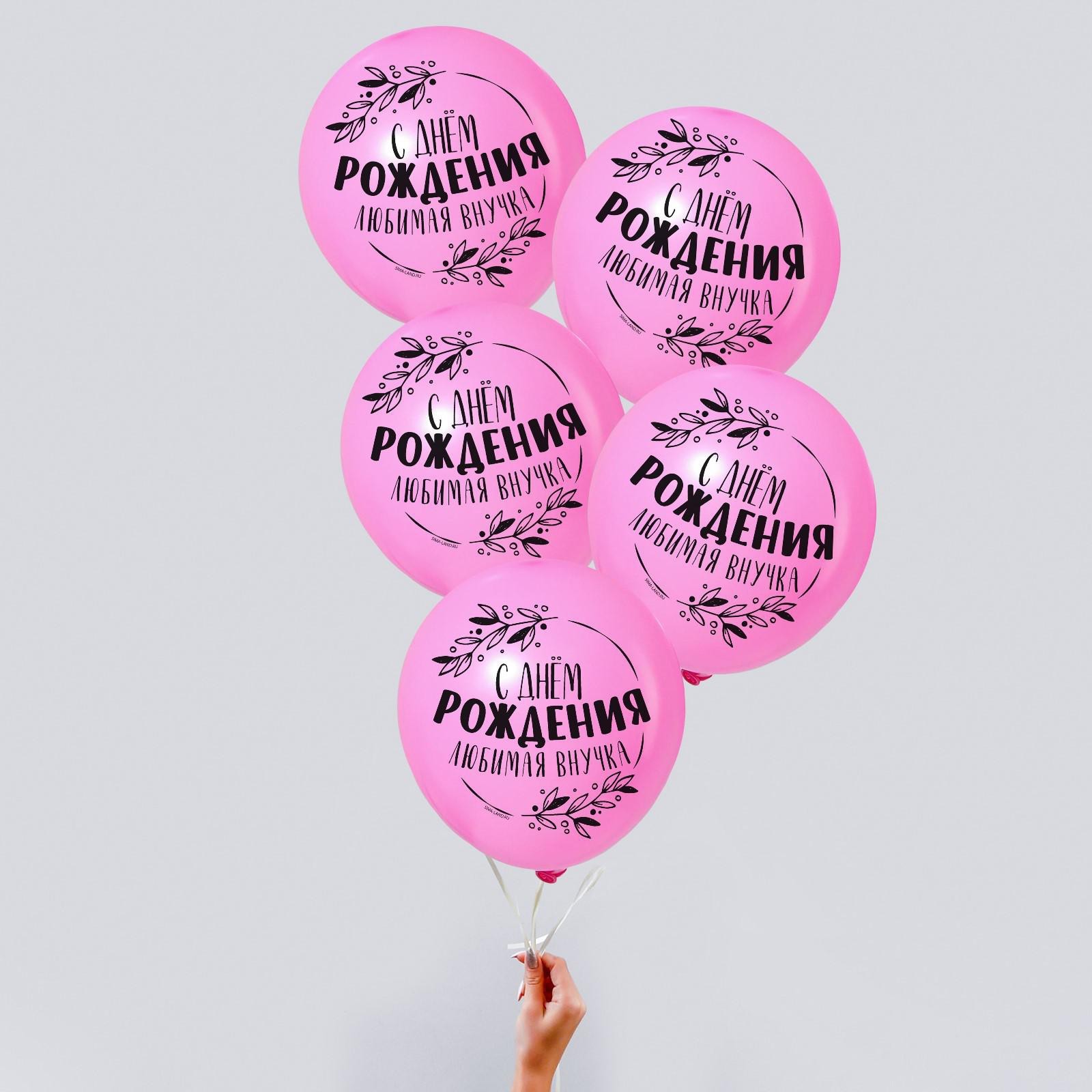 Воздушные шары латексные 12 «с днем рождения, любимая внучка», 5 шт.