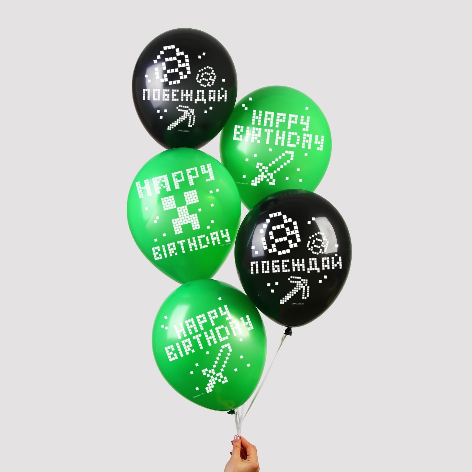 Набор:Да|Цвет:Зелёный|Цвет:Чёрный|В наборе, шт.:5|Диаметр, дюйм:12|Рисунок:Да|Тематика праздника:День рождения|Адресат:Именинник|Материал:Латекс|Тематика рисунка:День Рождения|Вид шара:Классический|Надувка шара:Гелием|Надувка шара:Воздухом|Язык надписи:Русский|Оттенок:Хром|Страна:Россия
