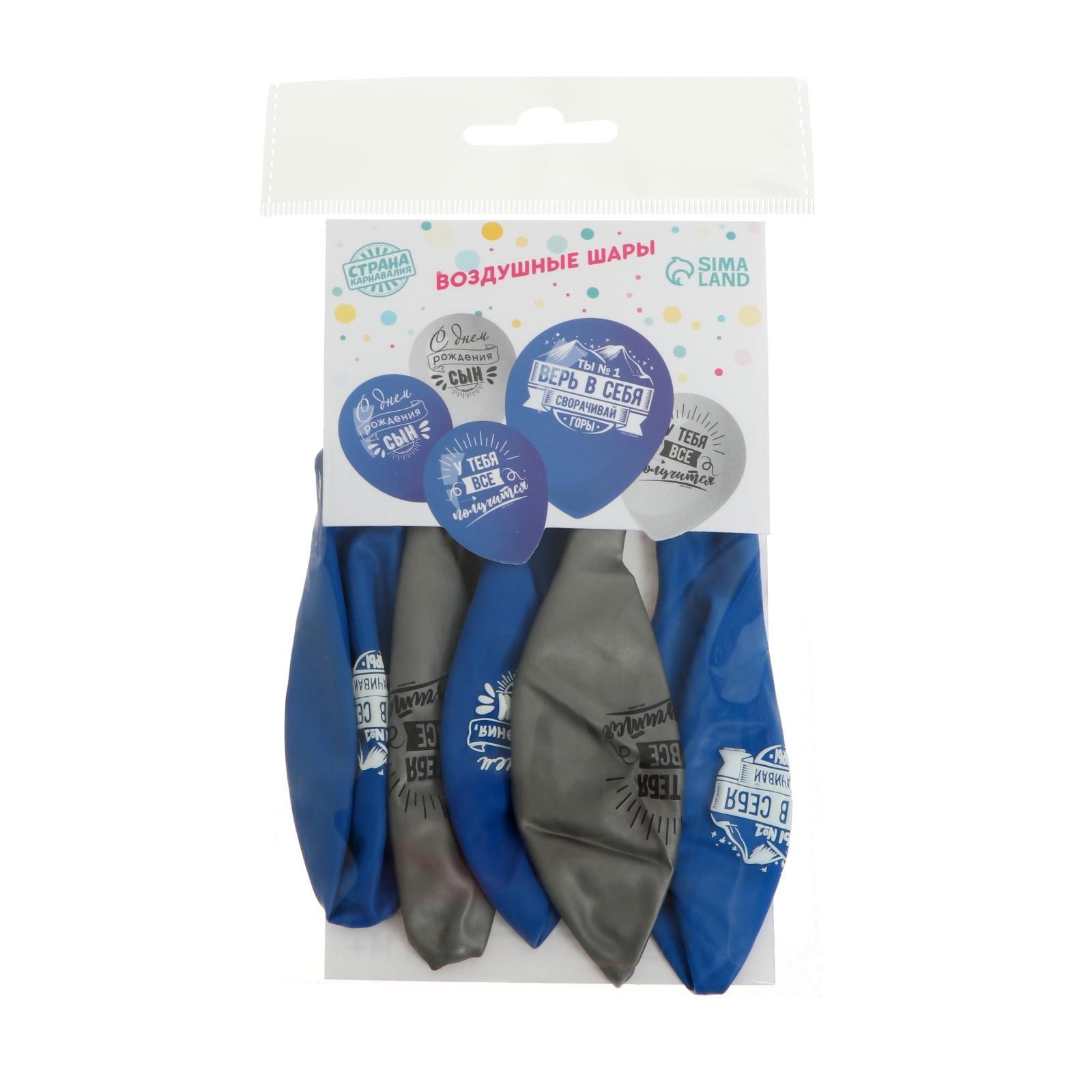 Воздушные шары латексные 12 «сворачивай горы, сын», 5 шт.. Латексные шары станут ярким украшением дня рождения. Они привлекают внимание и создают праздничную атмосферу благодаря своим ярким цветам. Шары добавят изюминку любому событию, ведь с помощью них легко создать стильный и современный декор. Особенности Размер одного шара — 12 дюймов (30 см).Шары можно надувать воздухом и гелием.Перед надуванием шаров гелием обработайте их специальным составом — так они будут дольше летать.Избегайте воздействия прямых солнечных лучей, повышенной влажности и перепада температуры, чтобы шар не деформировался.Шары идеально подойдут для оформления дней рождений. Их можно использовать как самостоятельный элемент декора или в сочетании с другими шарами для создания объёмных композиций. Отлично подходят для фотосессий. Идеи использования Создание праздничных арок и гирлянд.Украшение фотозон.Дополнение к подарку.Оформление залов и открытых площадок.Набор:Да|Цвет:Синий|В наборе, шт.:5|Диаметр, дюйм:12|Рисунок:Да|Тематика праздника:День рождения|Адресат:Сыну|Адресат:Именинник|Материал:Латекс|Тематика рисунка:День Рождения|Вид шара:Классический|Надувка шара:Воздухом|Надувка шара:Гелием|Язык надписи:Русский|Оттенок:Хром|Оттенок:Пастель|Страна:Россия  развернуть описание ▼