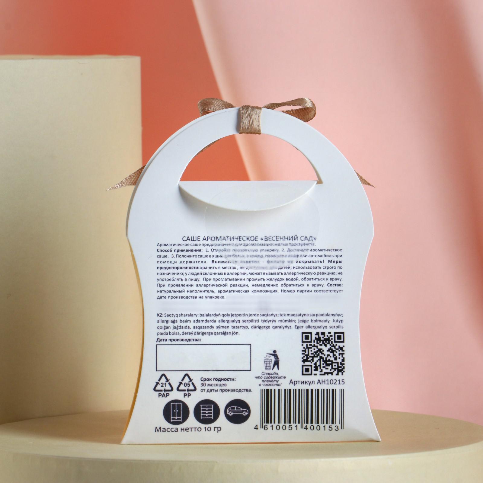 Саше ароматическое just for you "весенний сад", 10 г. Аромасаше — самый простой способ придать окружающим нас вещам и помещению отличный запах. Ранее саше было непременным атрибутом в доме каждой леди, а сейчас стало вполне доступной роскошью, которая создаст комфортные условия для отдыха, расслабления или же, в зависимости от выбора конкретного аромата, наоборот, — для активной и плодотворной работы. Правильно подобранный аромат позволит создать приятную и располагающую обстановку дома. parts count: 0 Вид ароматизатора: Бумажный Аромат: Свежесть Температурное ограничение: Нет  развернуть описание ▼