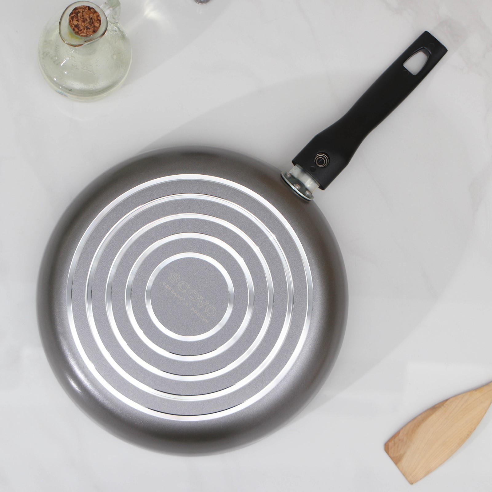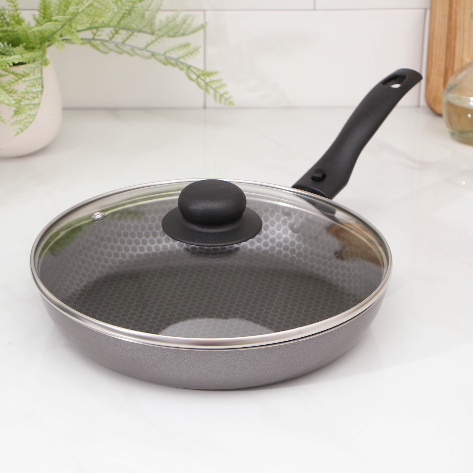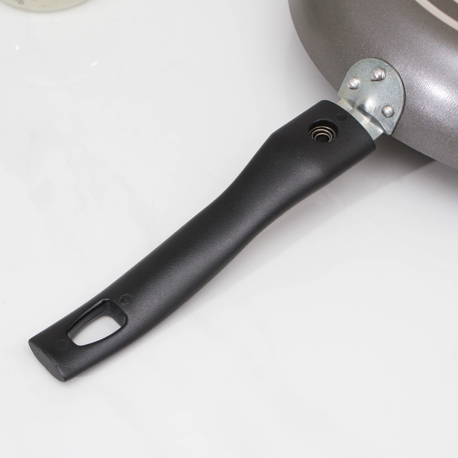 Сковорода Discovery, D=24 см, стеклянная крышка, съёмная ручка, антипригарное покрытие, цвет серый