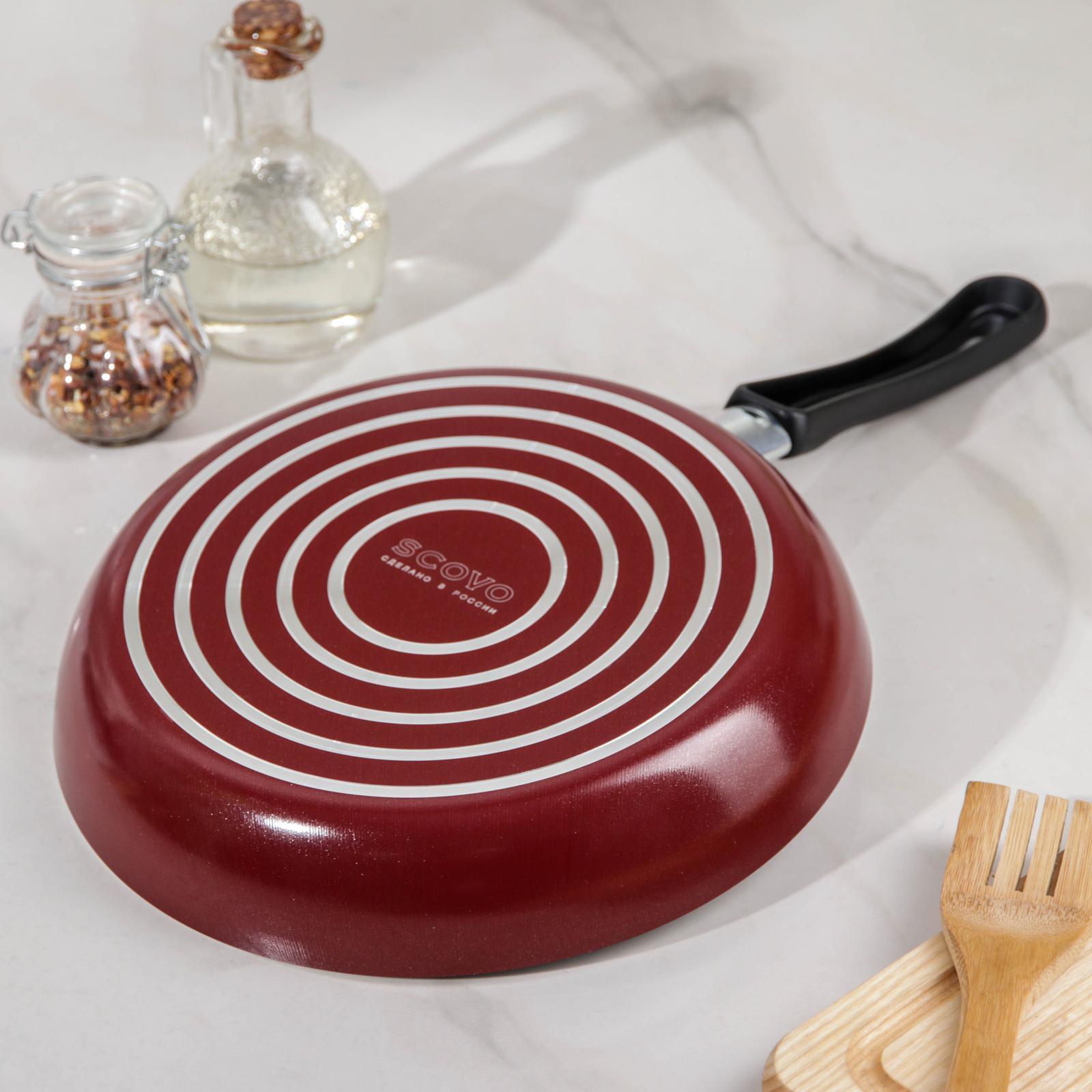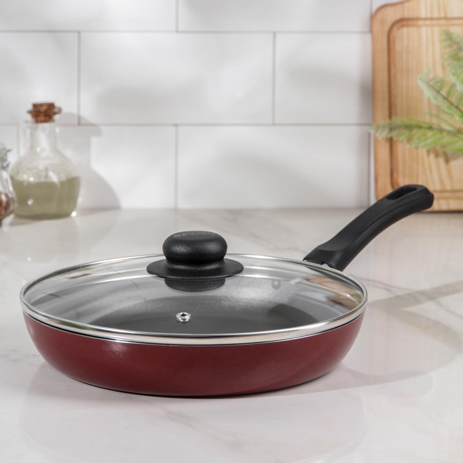 Сковорода «эксперт», D=24 см, стеклянная крышка, пластиковая ручка, антипригарное покрытие, цвет бордовый
