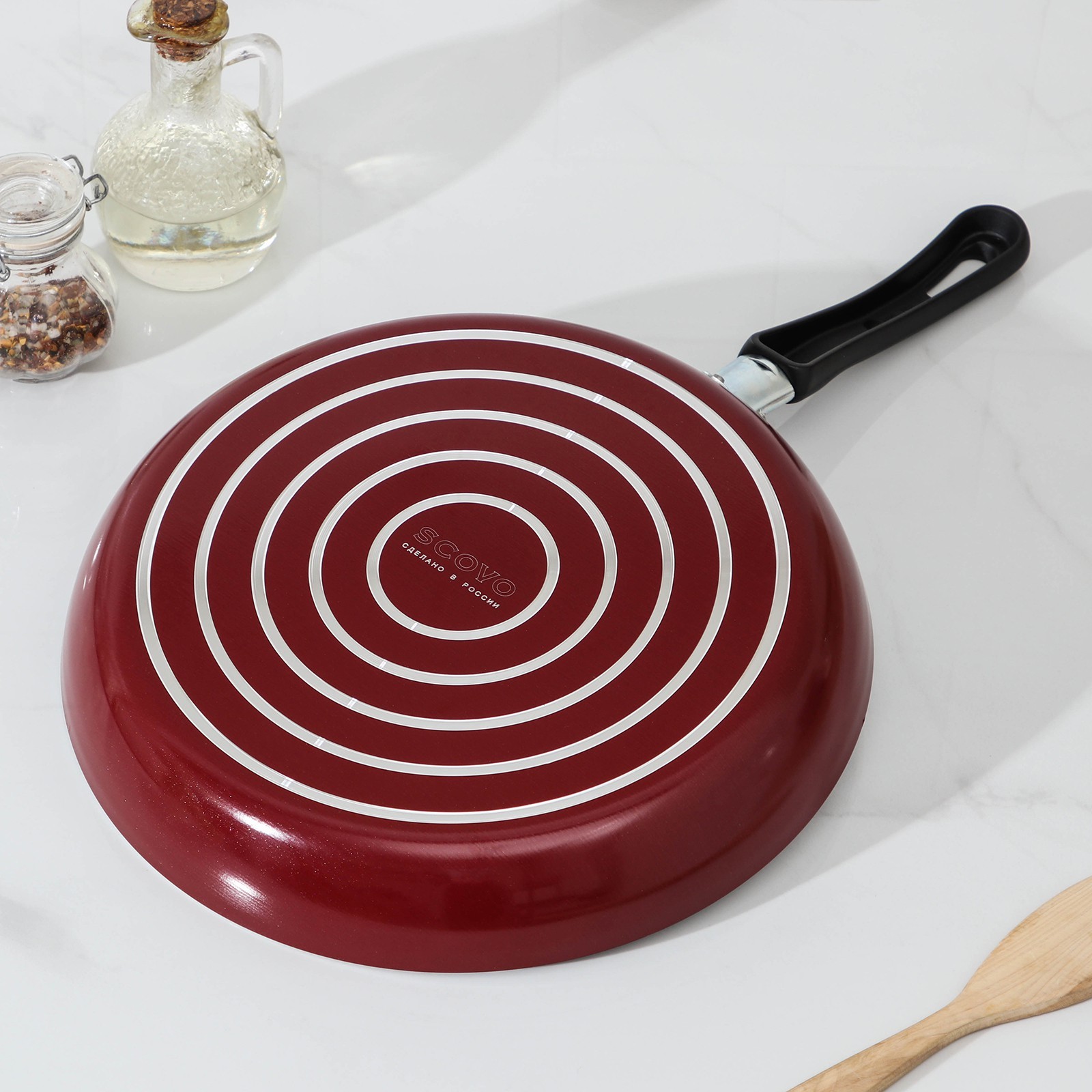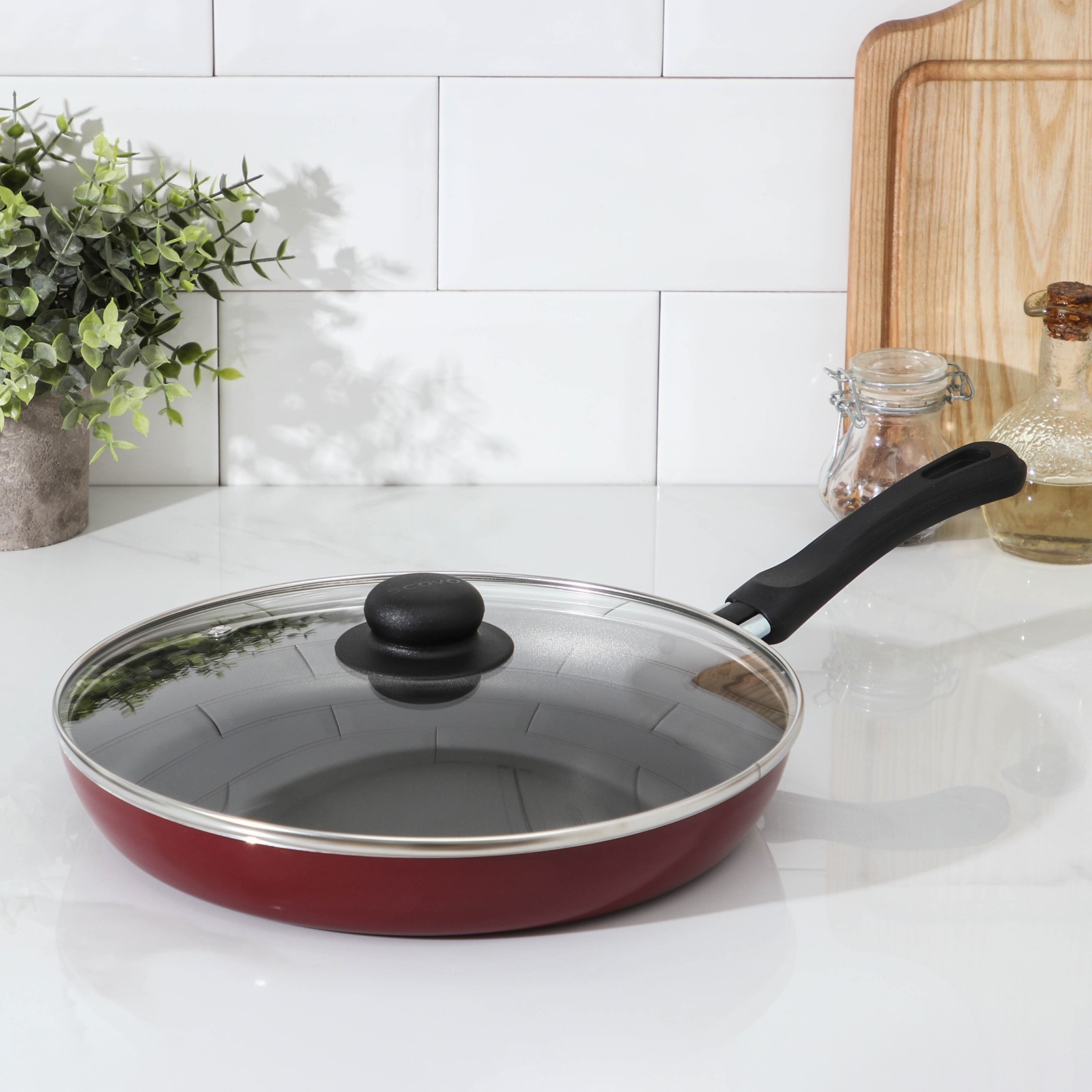 Сковорода «эксперт», D=28 см, пластиковая ручка, стеклянная крышка, антипригарное покрытие, цвет бордовый